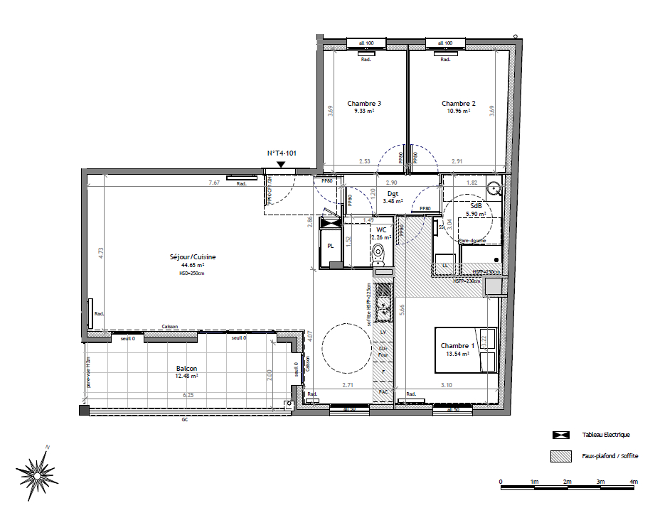 90 m² • 4 pièces • 3 chambres