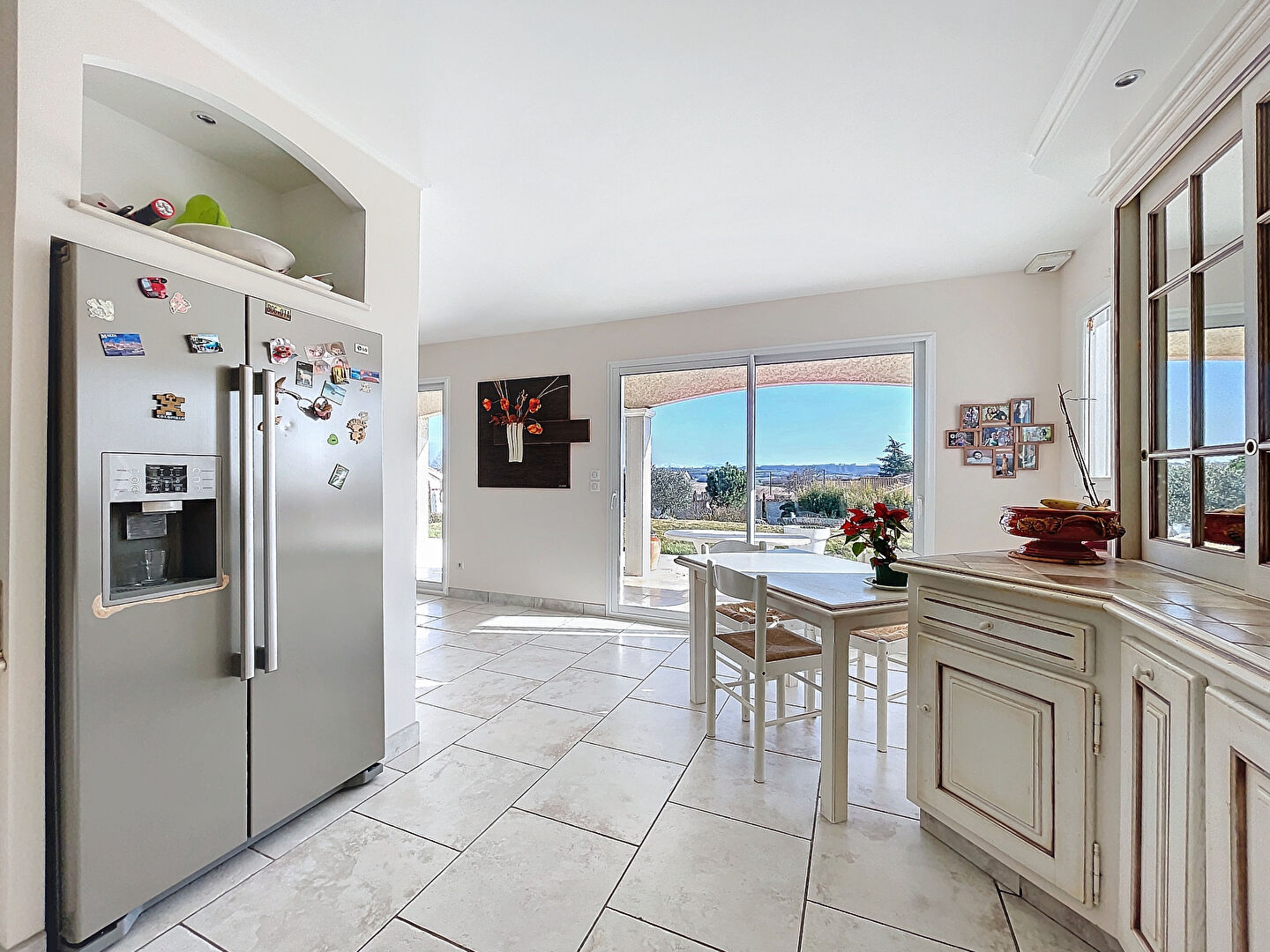 La cuisine est entièrement équipée et ouverte sur le séjour.