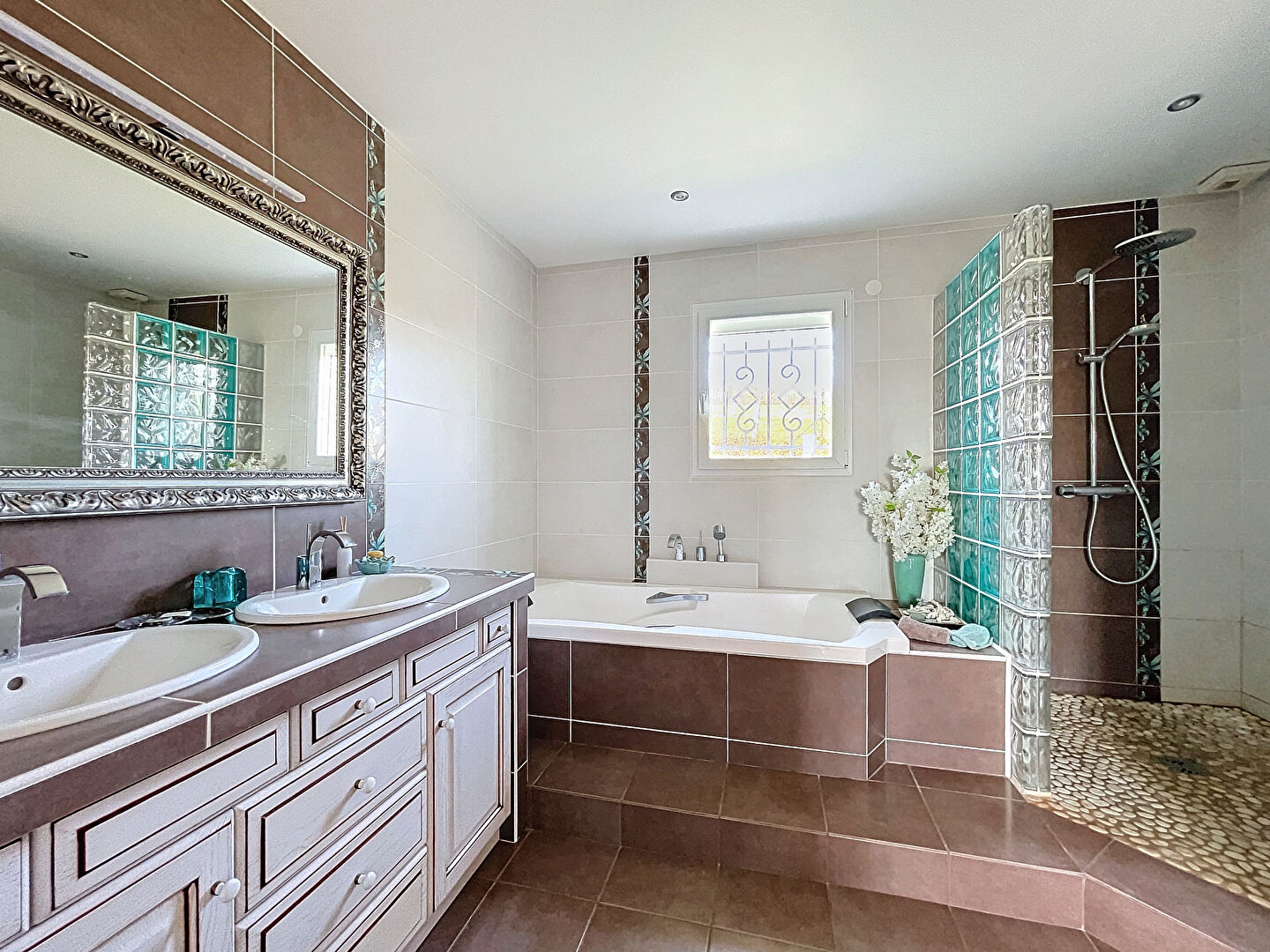 Au rez de chaussée une belle suite parentale avec son immense dressing, une 2ème chambre, ainsi que une salle de bains indépendante avec baignoire et douche.