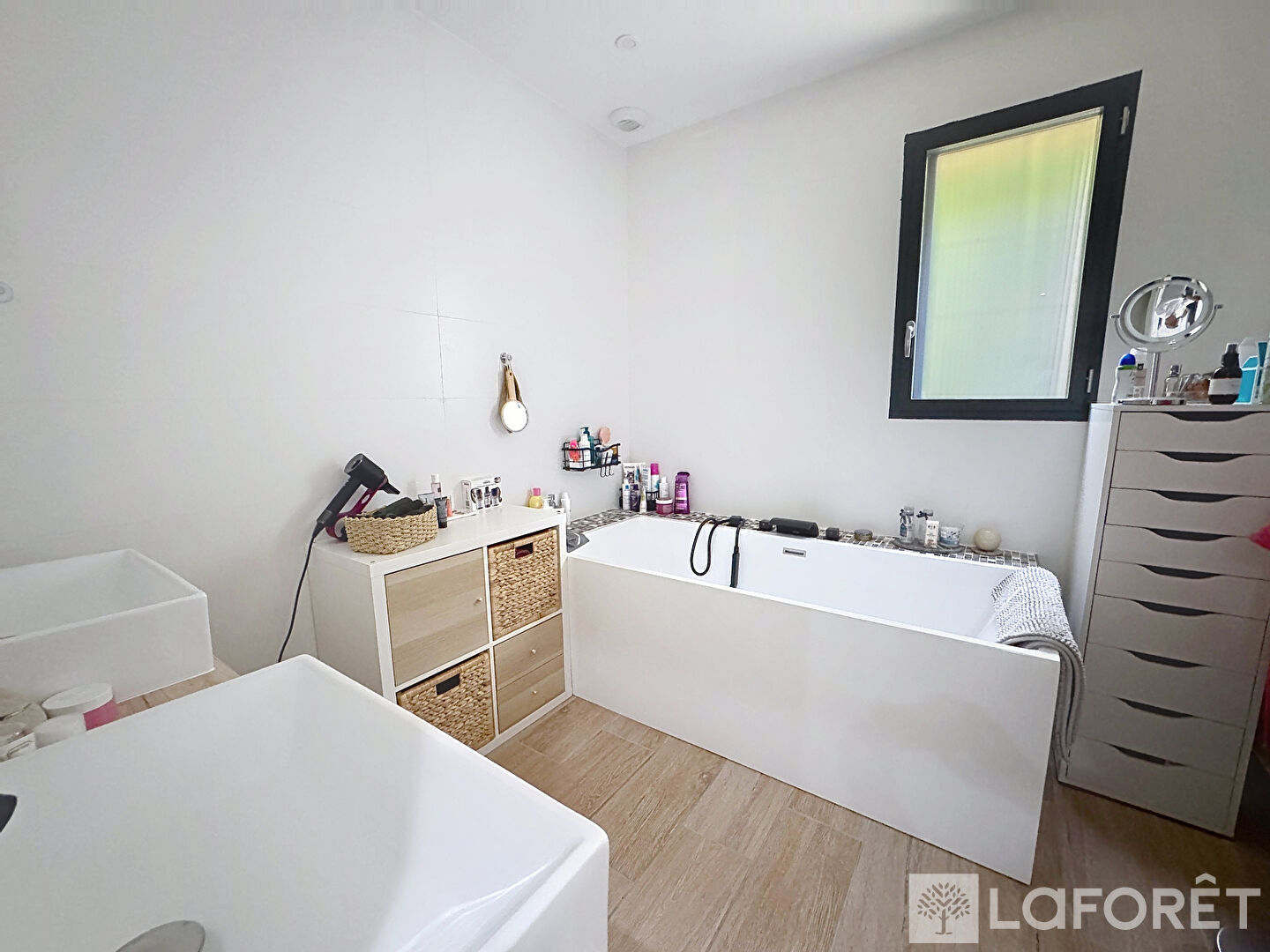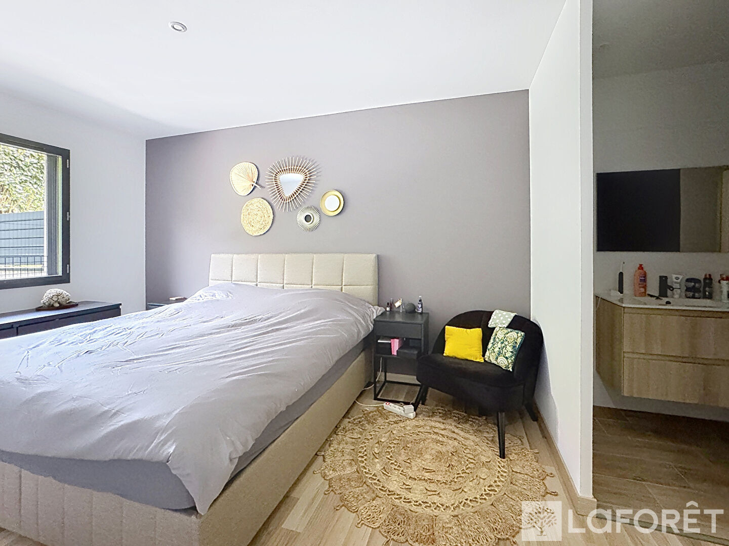 Côté nuit, la maison propose trois chambres, dont une suite parentale avec dressing et salle d'eau privative. Une salle de bain avec baignoire vient compléter l'espace, répondant parfaitement aux besoins d'une famille.