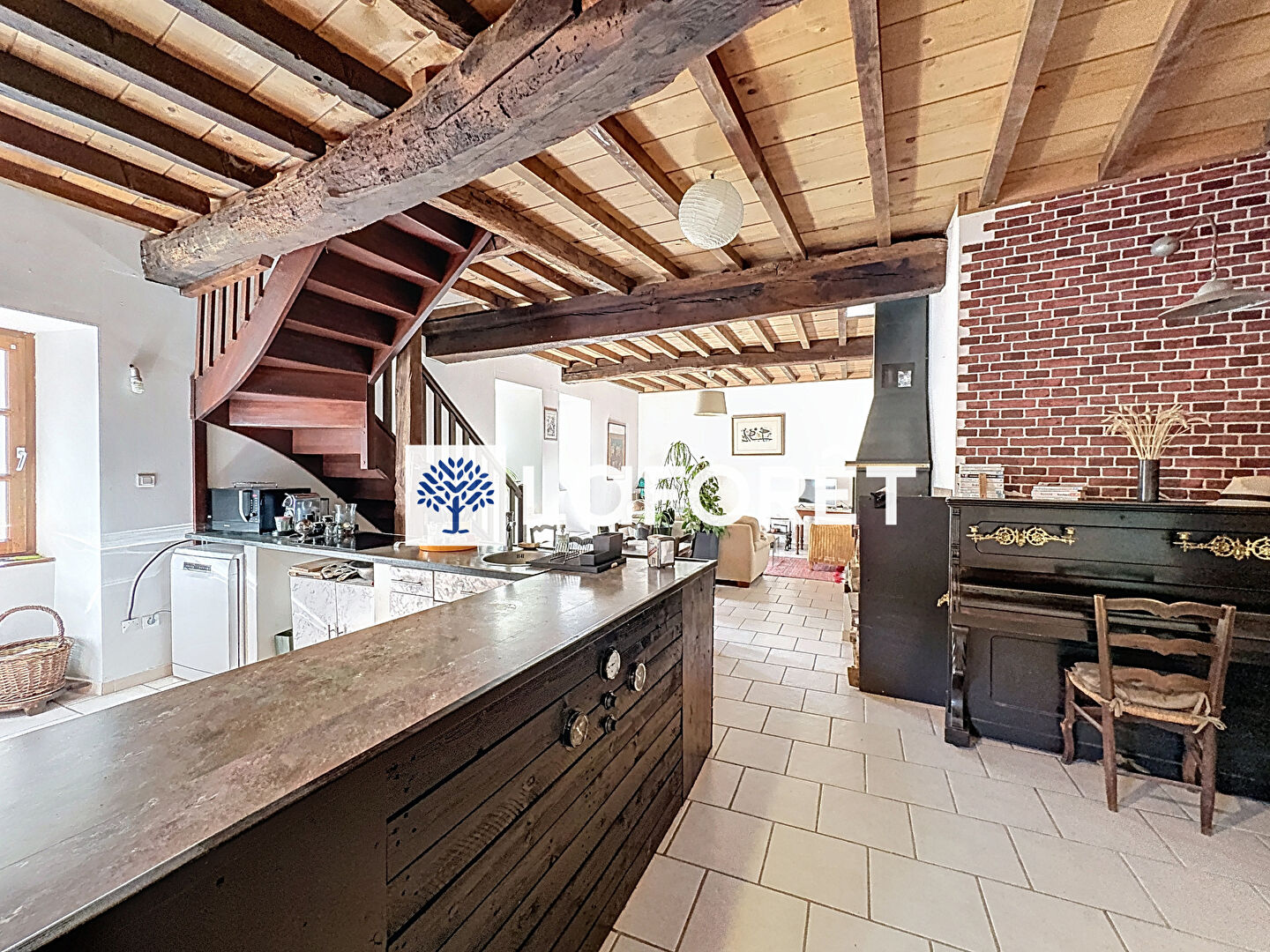 La maison est composée d'un hall d'entré avec WC au rez de chaussé et un espace buanderie. Au premier étage, une grand pièce de vie avec cuisine ouverte sur le séjour- salle à manger.