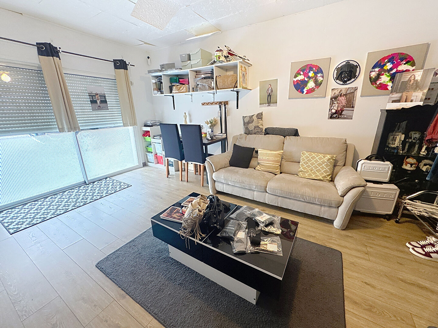 Un vaste salon lumineux ouvrant sur une terrasse extérieure, parfait pour vos moments de détente et de convivialité.