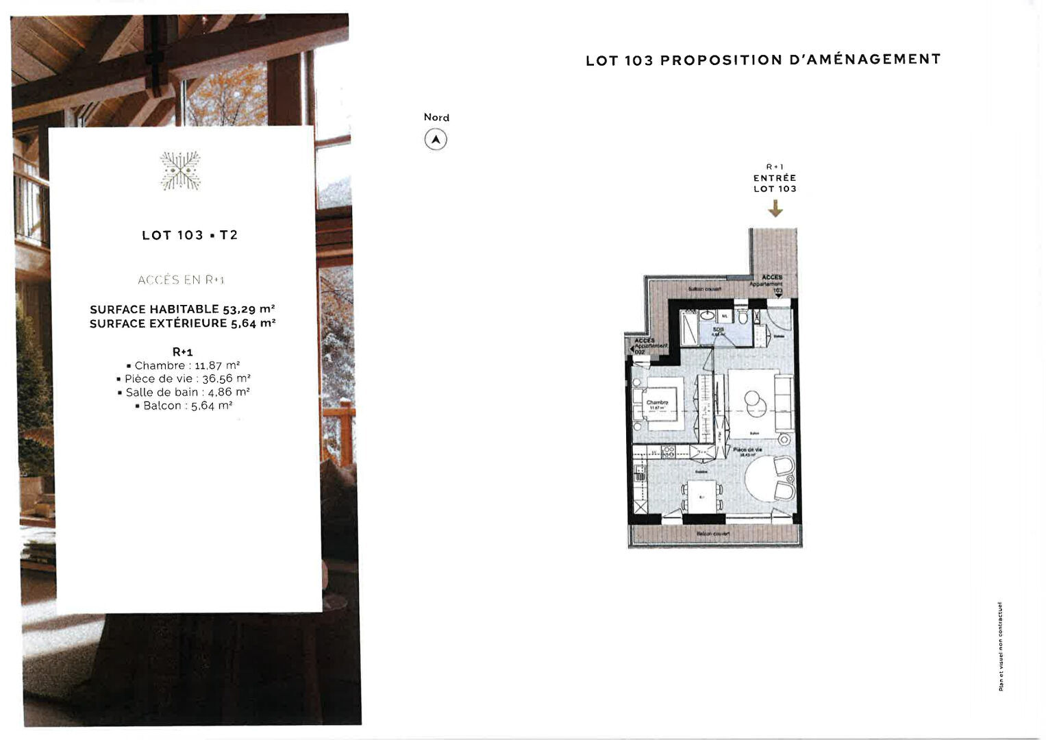 ACHAT-VENTE 73700 SEEZ Appartement T2 de 53.29 M2 situé dans une petite résidence de 5 appartements. Situé au R+1, il est composé ainsi : entrée, une pièce de vie, une chambre, une salle de bain/WC. Un balcon de 5.64 m2 . Prestations haut de gamme.