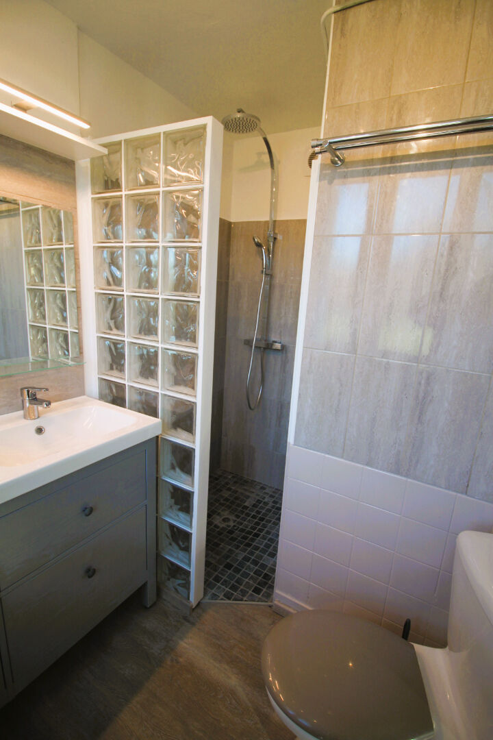 Une buanderie est aménagée dans le prolongement de la maison, avec WC sanibroyeur, branchements lave-linge.
