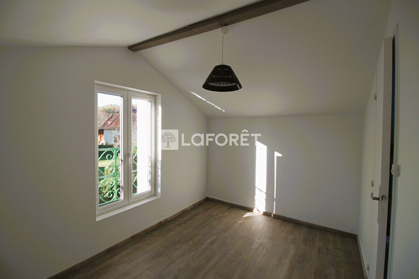 À l'étage; une première chambre d'environ 10.63m2, sur parquet flottant, avec vélux et fenêtre.