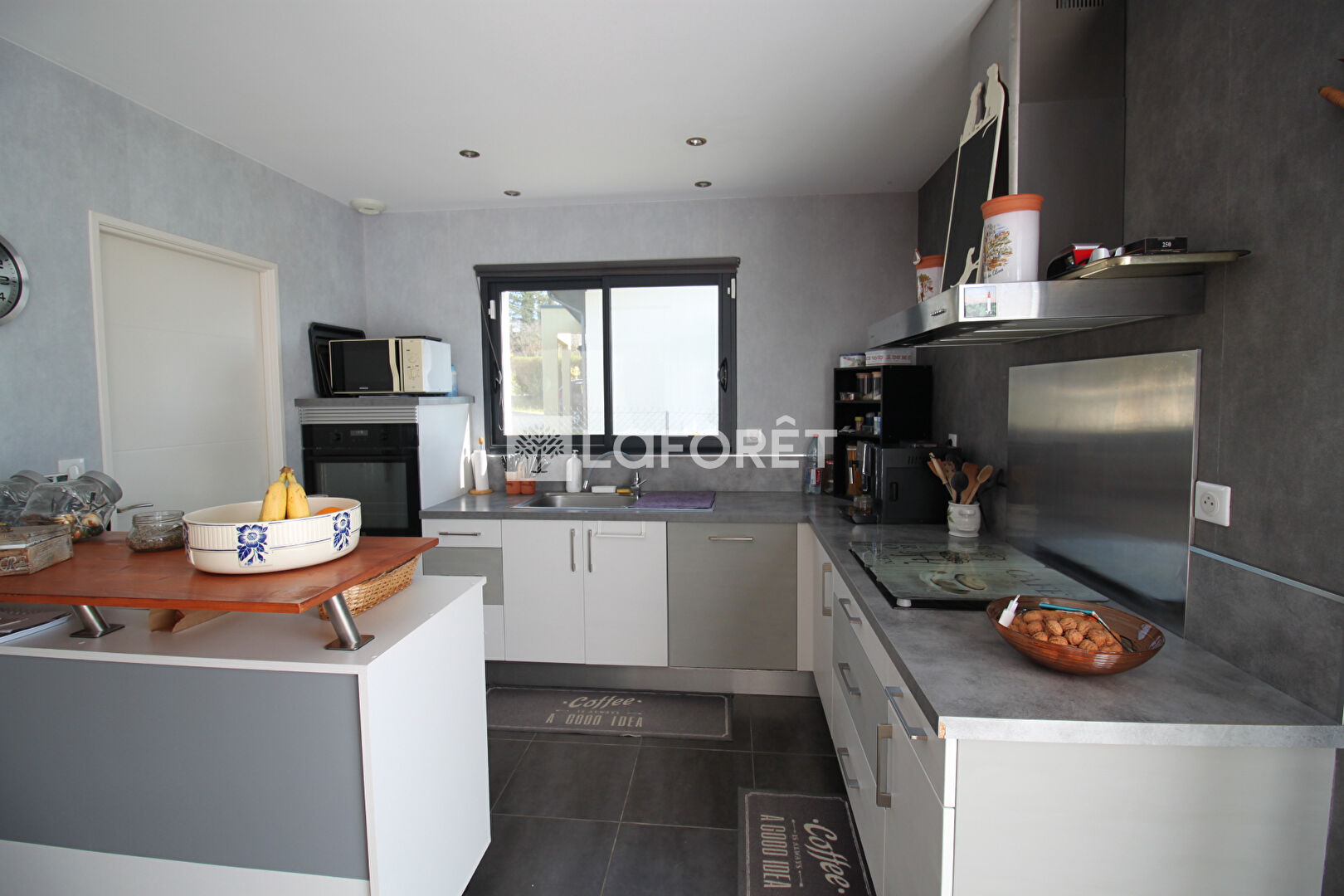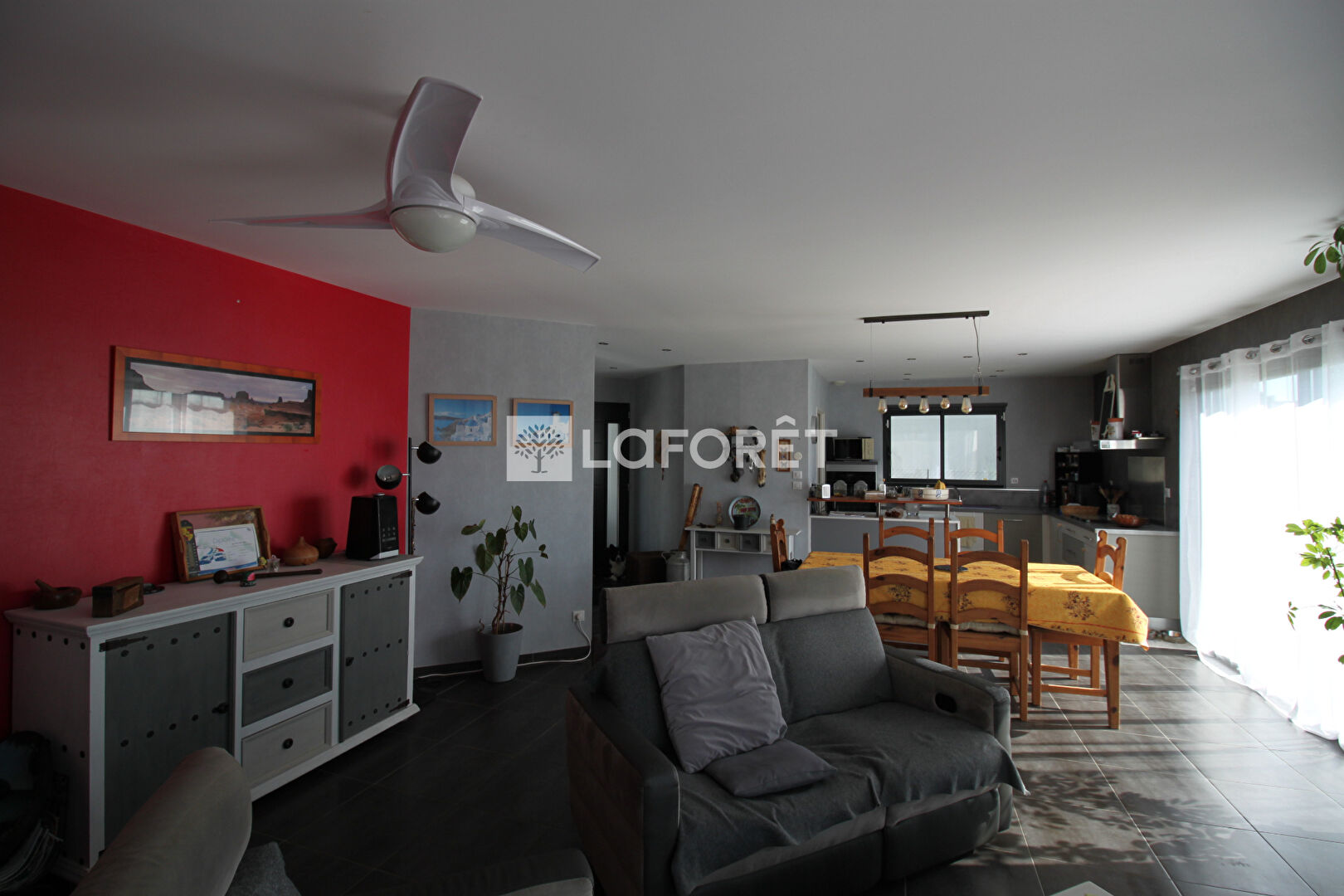 la cuisine, ouverte, est aménagée et entièrement équipée, complétée par un cellier/buanderie. Un WC avec fenêtre vient compléter cet espace de vie.