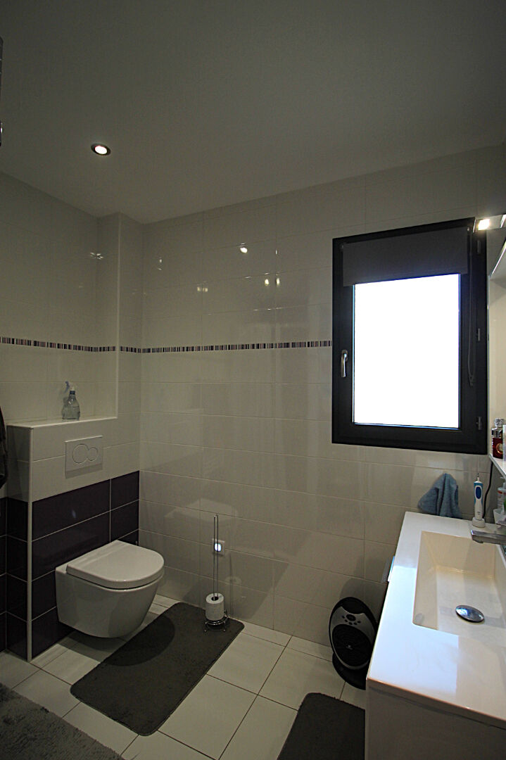 Côté nuit, un dégagement dessert une salle d'eau moderne équipée d'un meuble vasque, d'un miroir éclairé, d'une douche à l'italienne ainsi que d'un WC suspendu. Vous disposerez également de trois chambres de 11 et 12 m² dont une avec dressing d'environ 19 m²