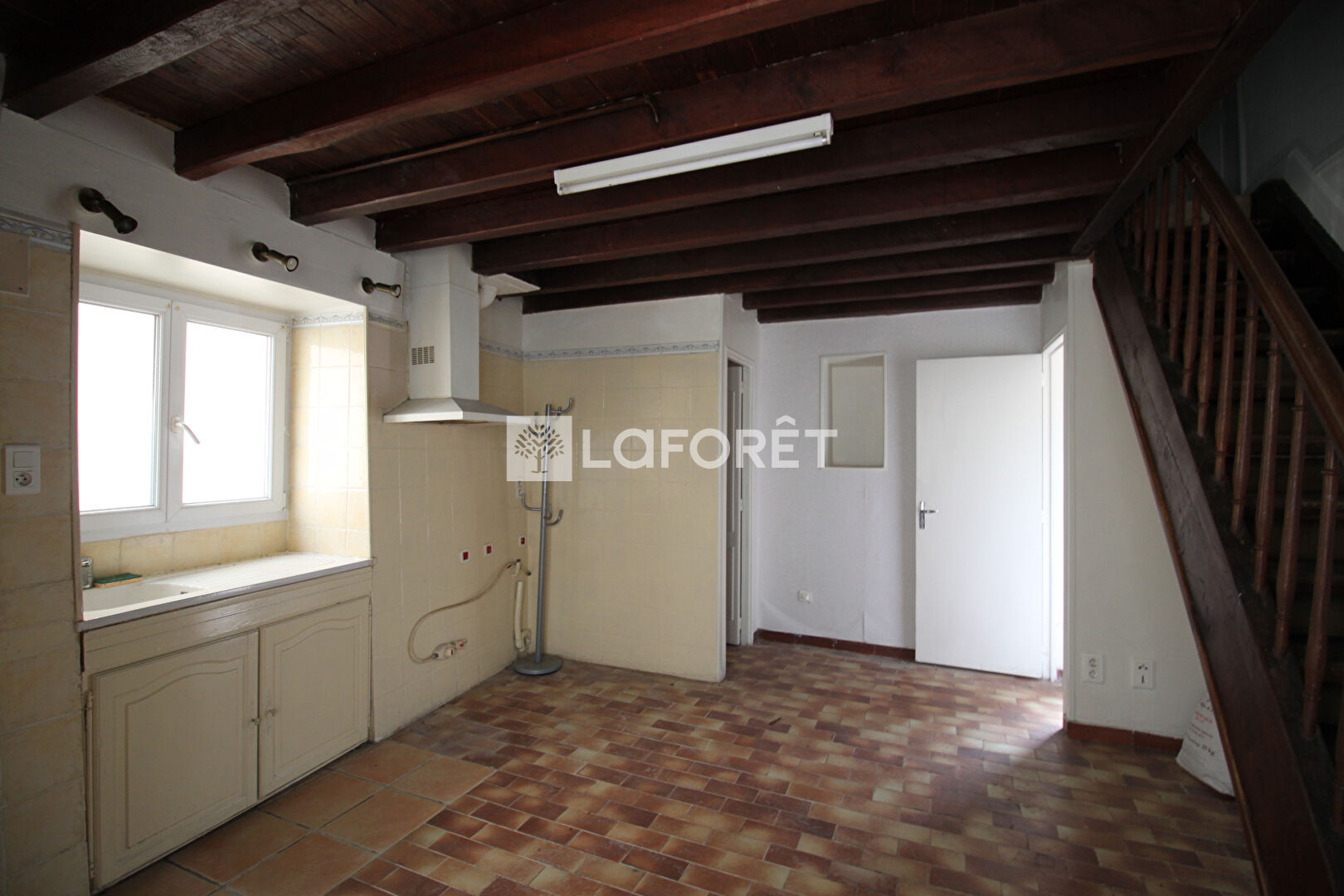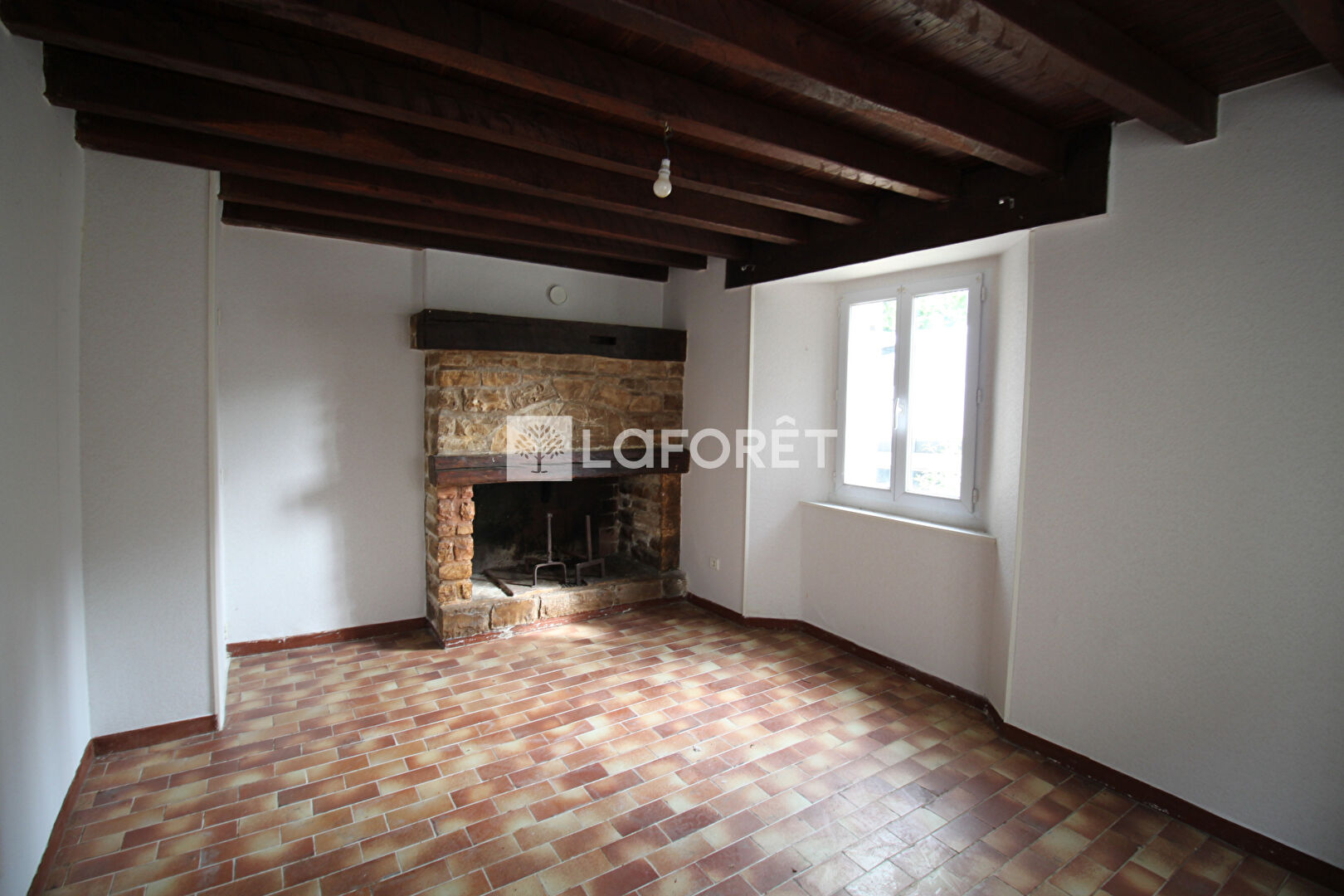 Une entrée qui donne sur une lumineuse cuisine de 16m2 à aménagée. Des sanitaires puis un salon avec une grande cheminée en pierre. Un escalier mène à l'étage et offre deux belles chambres de 15m2 et 11m2. Une salle d'eau vient compléter ce bien, avec douche, vasque, cumulus et une fenêtre pour plus de luminosité.