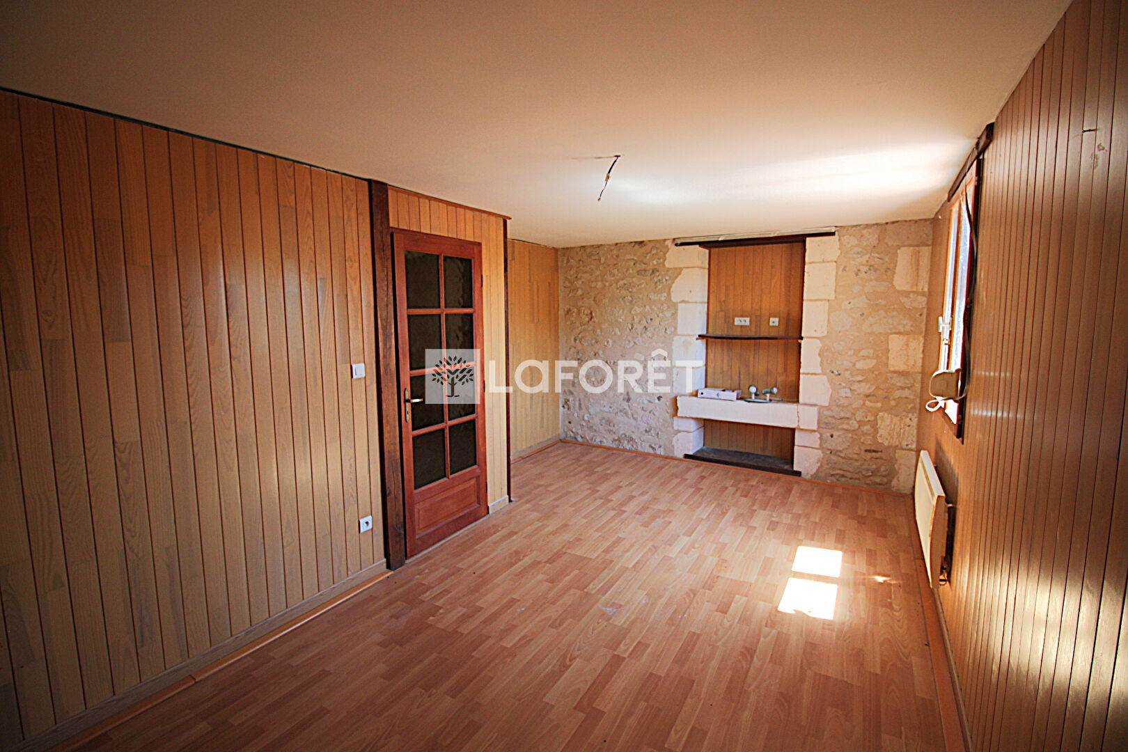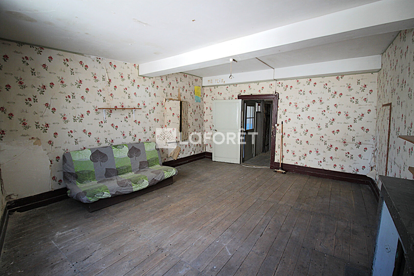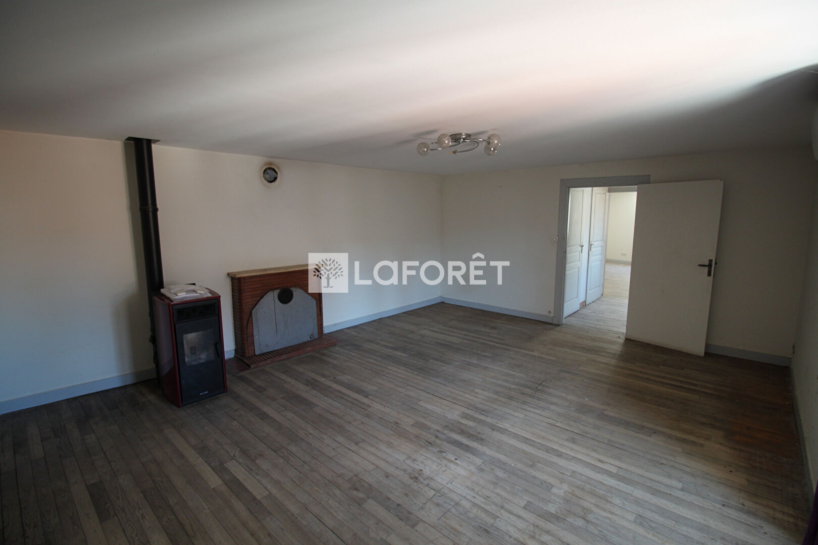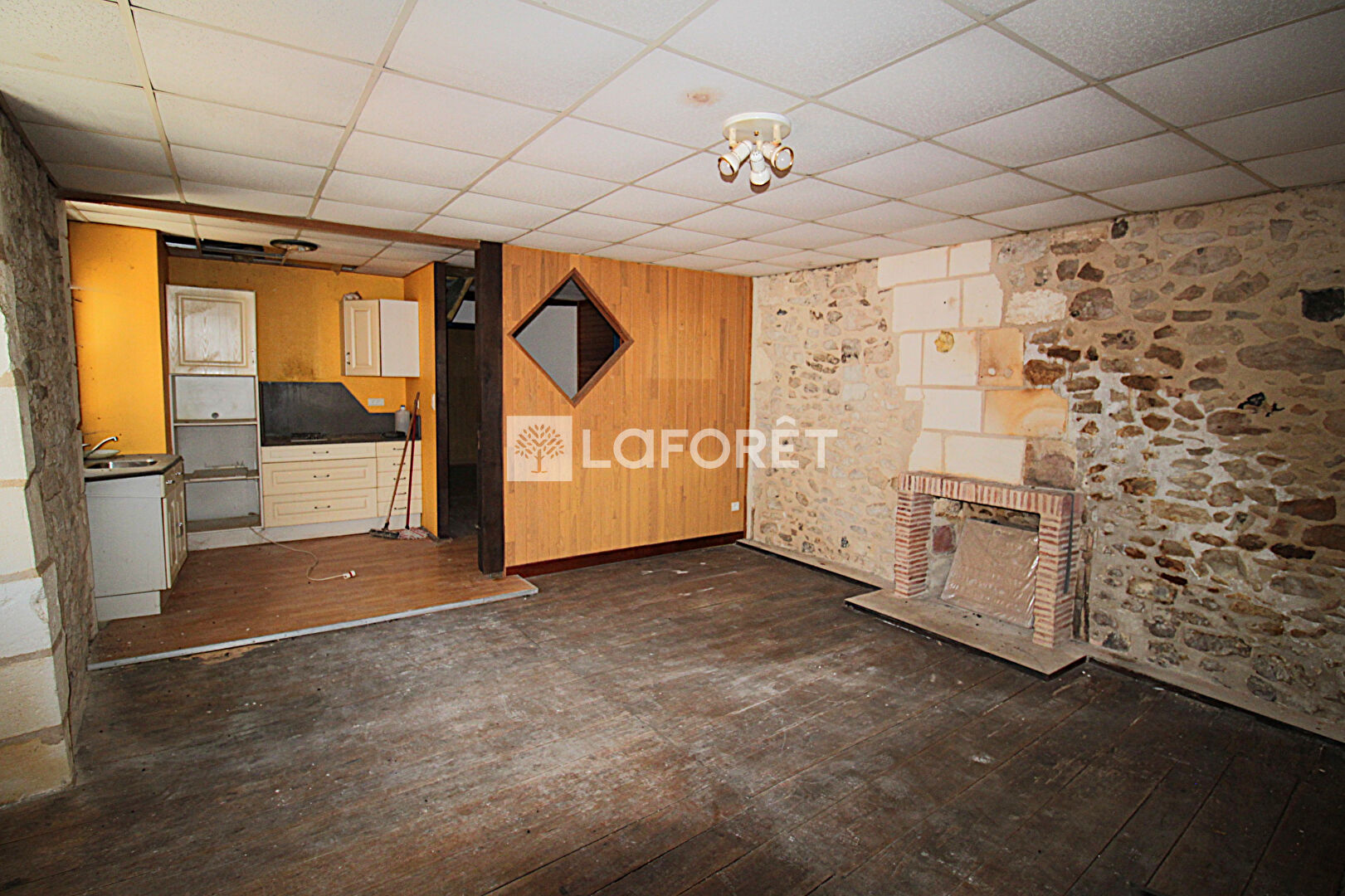 Une première entrée d'environ 22 m², une seconde entrée d'environ 26 m² avec une cheminée en pierre. Une grande pièce brute d'environ 53 m² offre de nombreuses possibilités d'aménagement. Un escalier mène à l'étage supérieur.