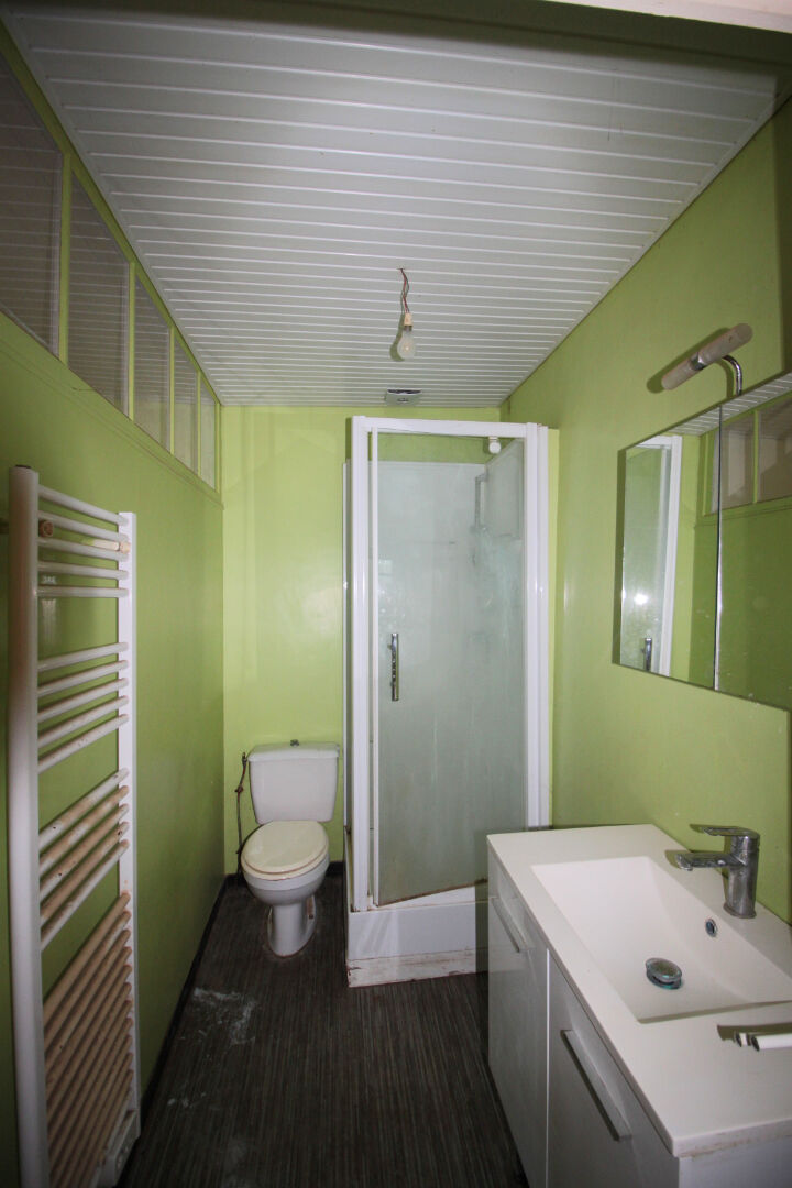 À l'étage, un palier dessert deux chambres de 12 m² et 8 m² ainsi qu'une salle d'eau avec WC.