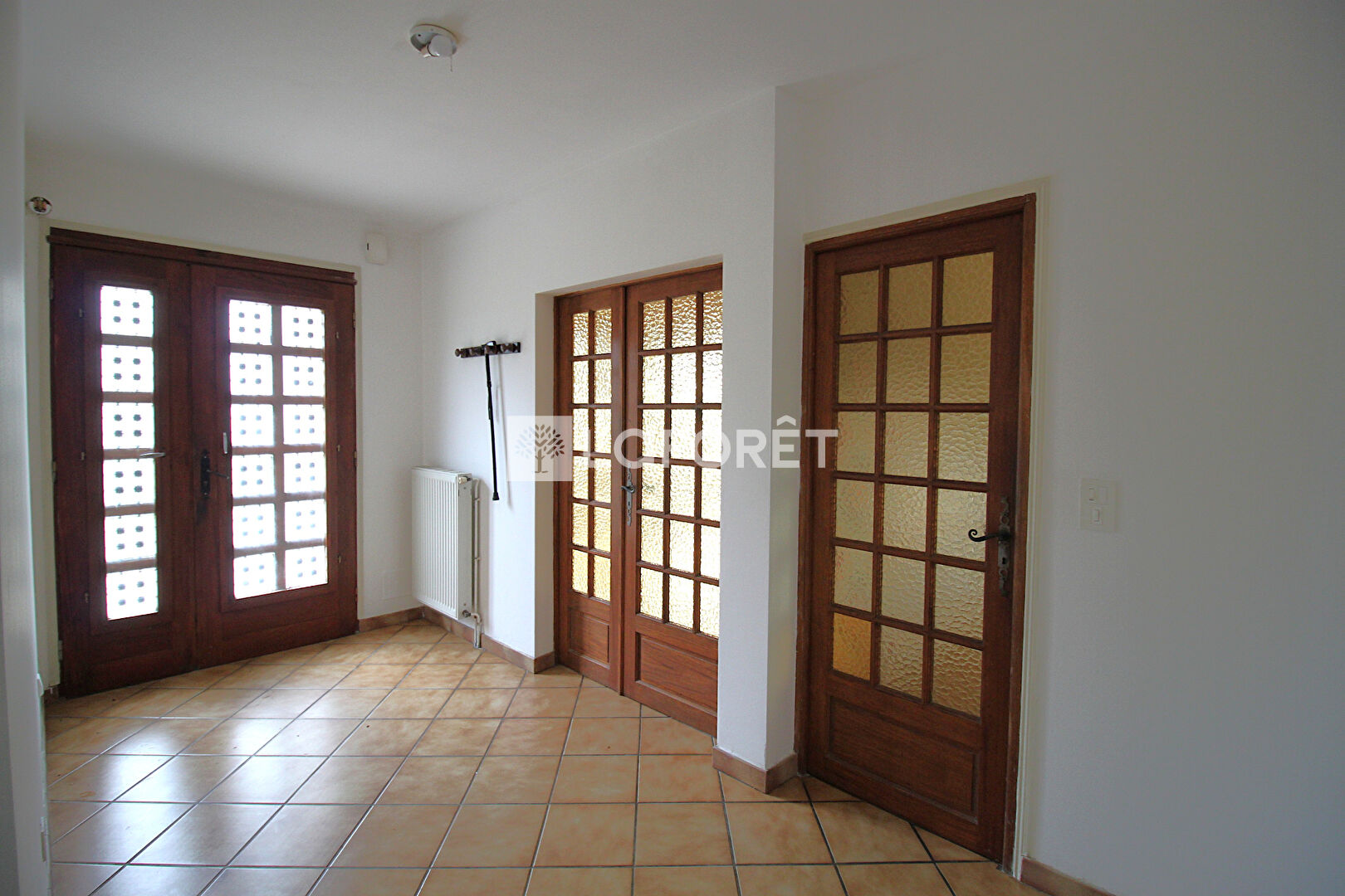 L'accès au rez-de-chaussée se fait par une vaste terrasse de 37 m², bénéficiant d'une exposition plein sud. Une grande entrée d'environ 7,96 m² dessert une belle pièce de vie d'environ 35 m², agrémentée d'une cheminée avec insert. Cette pièce bénéficie de deux portes fenêtres et une fenêtre, apportant une belle luminosité.