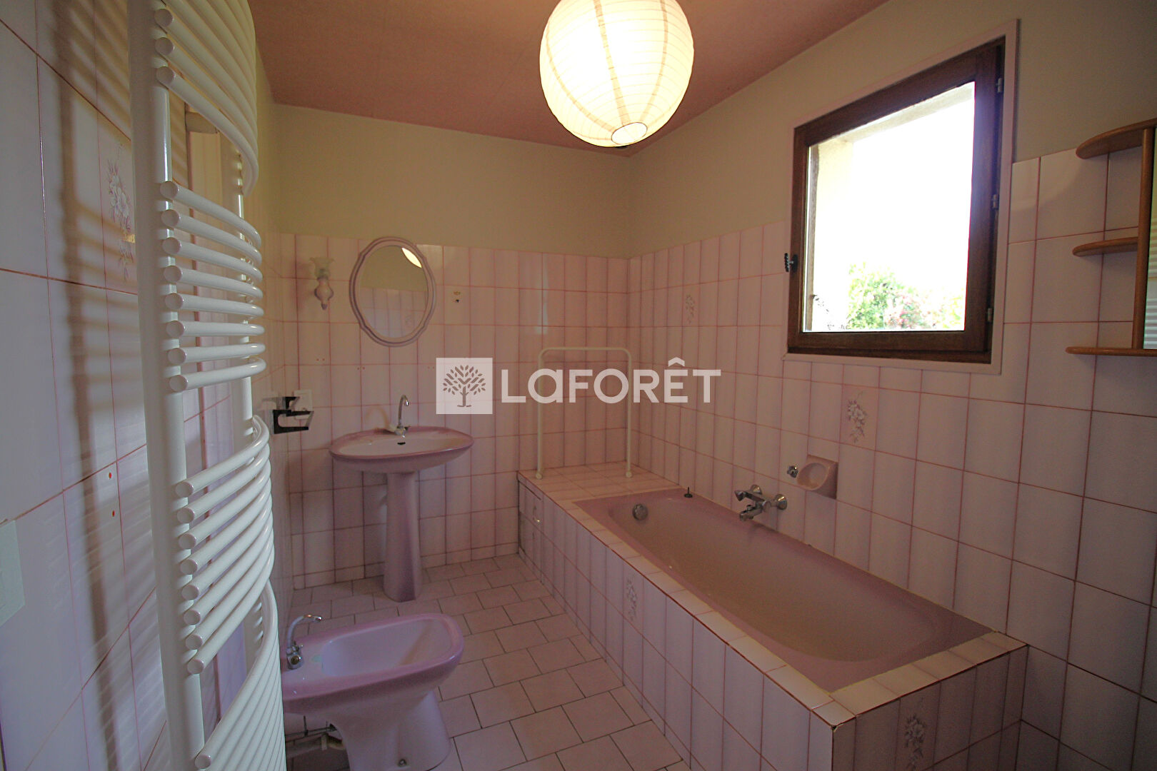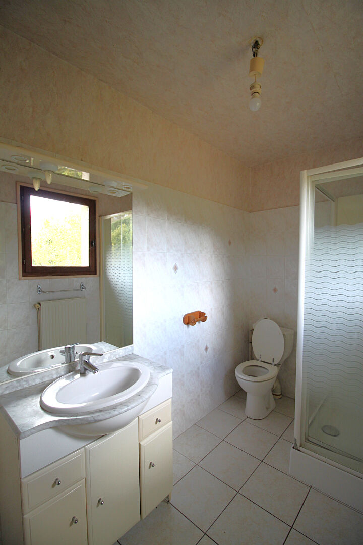 La maison dispose également d'une cuisine fermée, aménagée de meubles hauts et bas; d'une salle d'eau avec WC, d'un dégagement, d'un WC indépendant, ainsi que de trois chambres dont les surfaces varient de 8 à 11 m². Une salle de bains en supplément complète ce niveau.