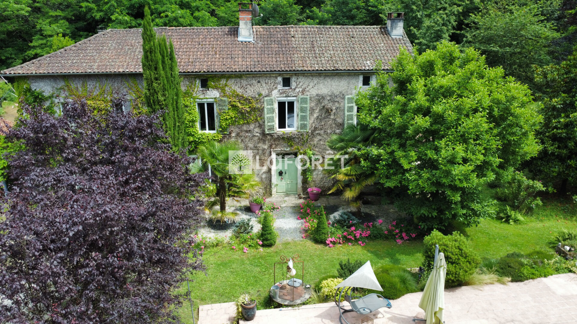 Dans un écrin de verdure d'environ 8000m² de prés, d'eau et de coteau .