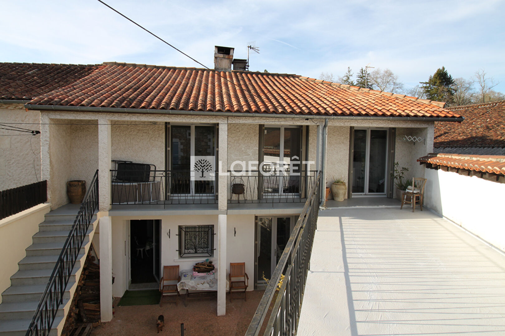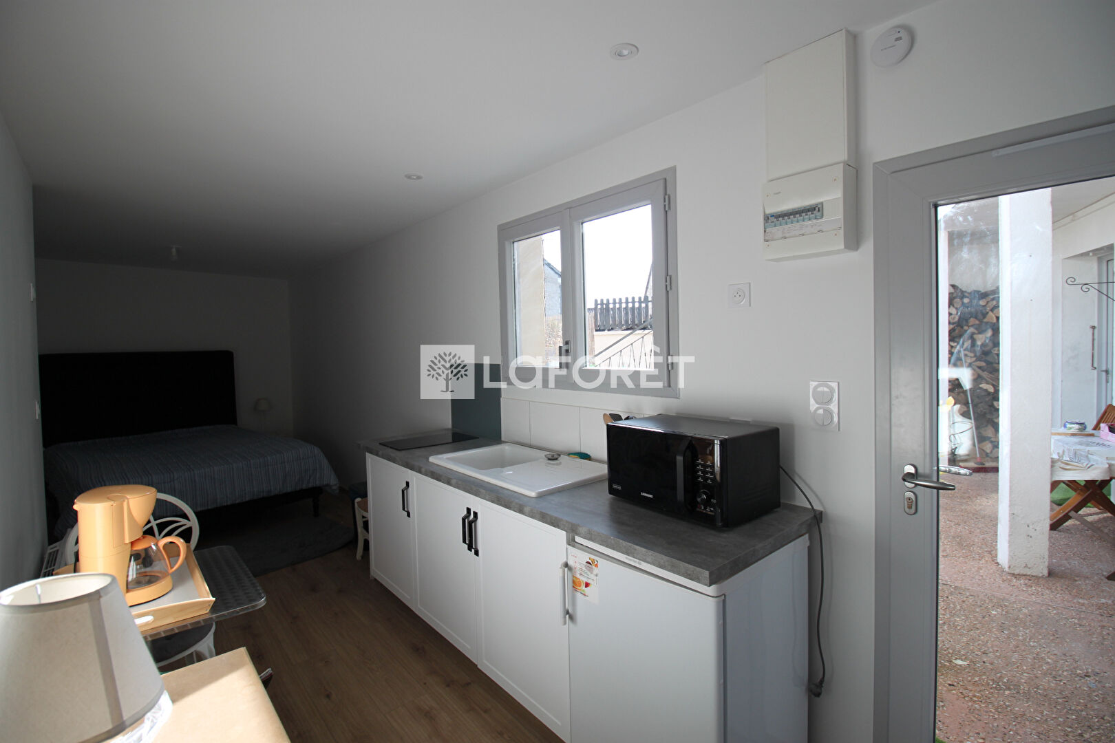A l'avant, une petite cour fermée apporte une touche d'intimité. En complément, la propriété dispose d'un studio indépendant d'environ 19 m², parfait pour accueillir des invités ou pour un projet locatif. Ce dernier comprend un espace nuit, un coin cuisine et une salle d'eau d'environ 3 m².