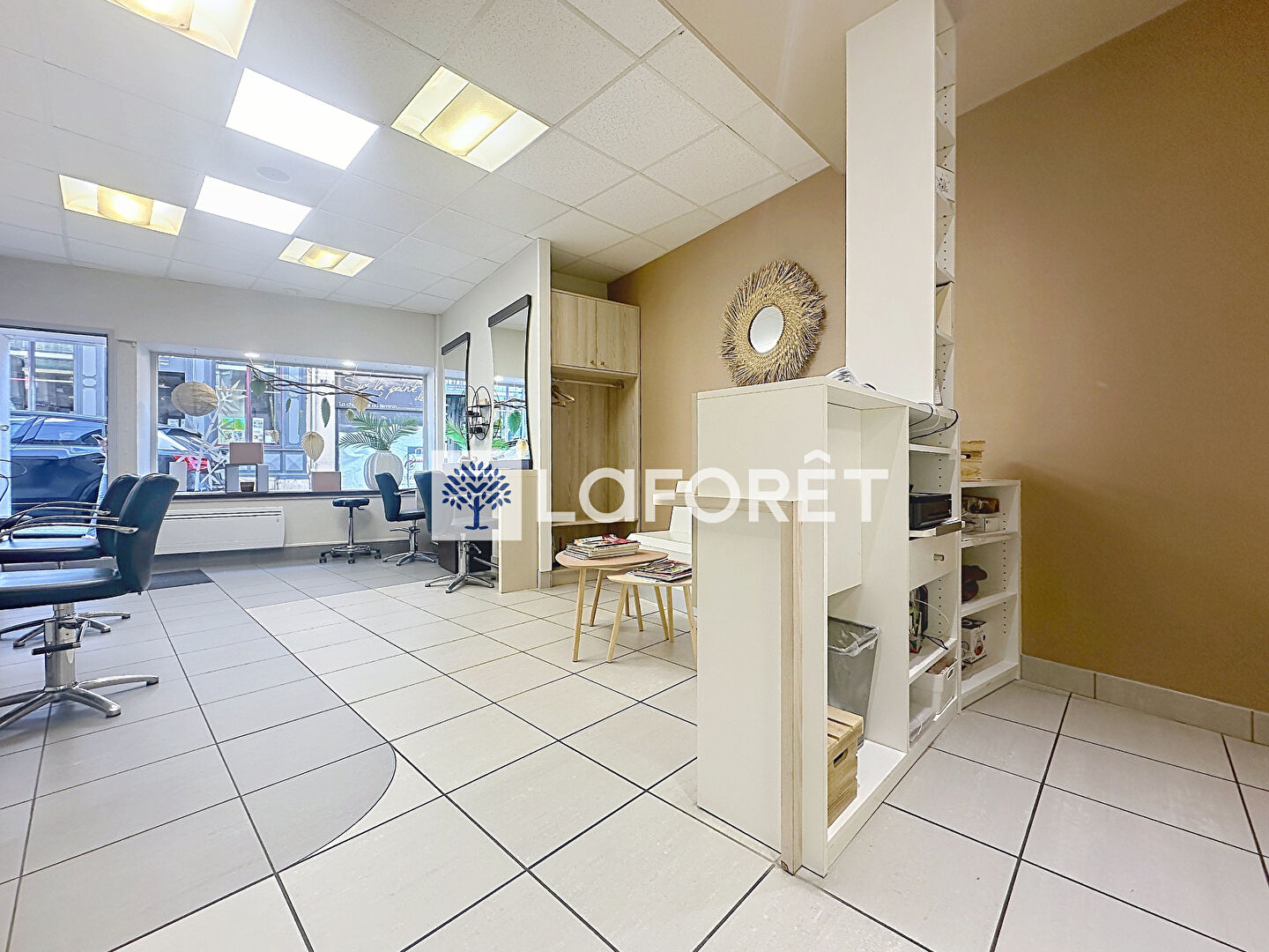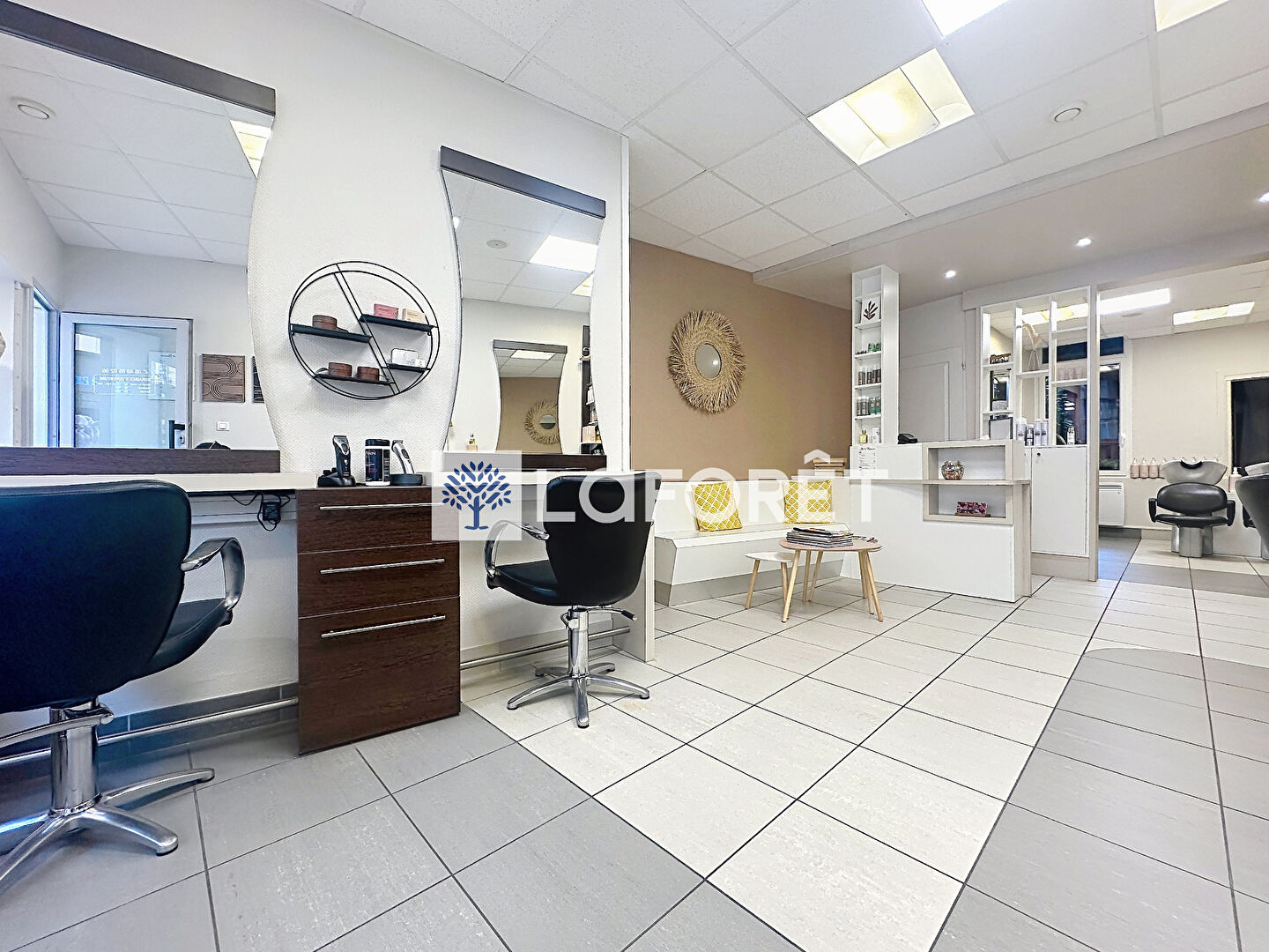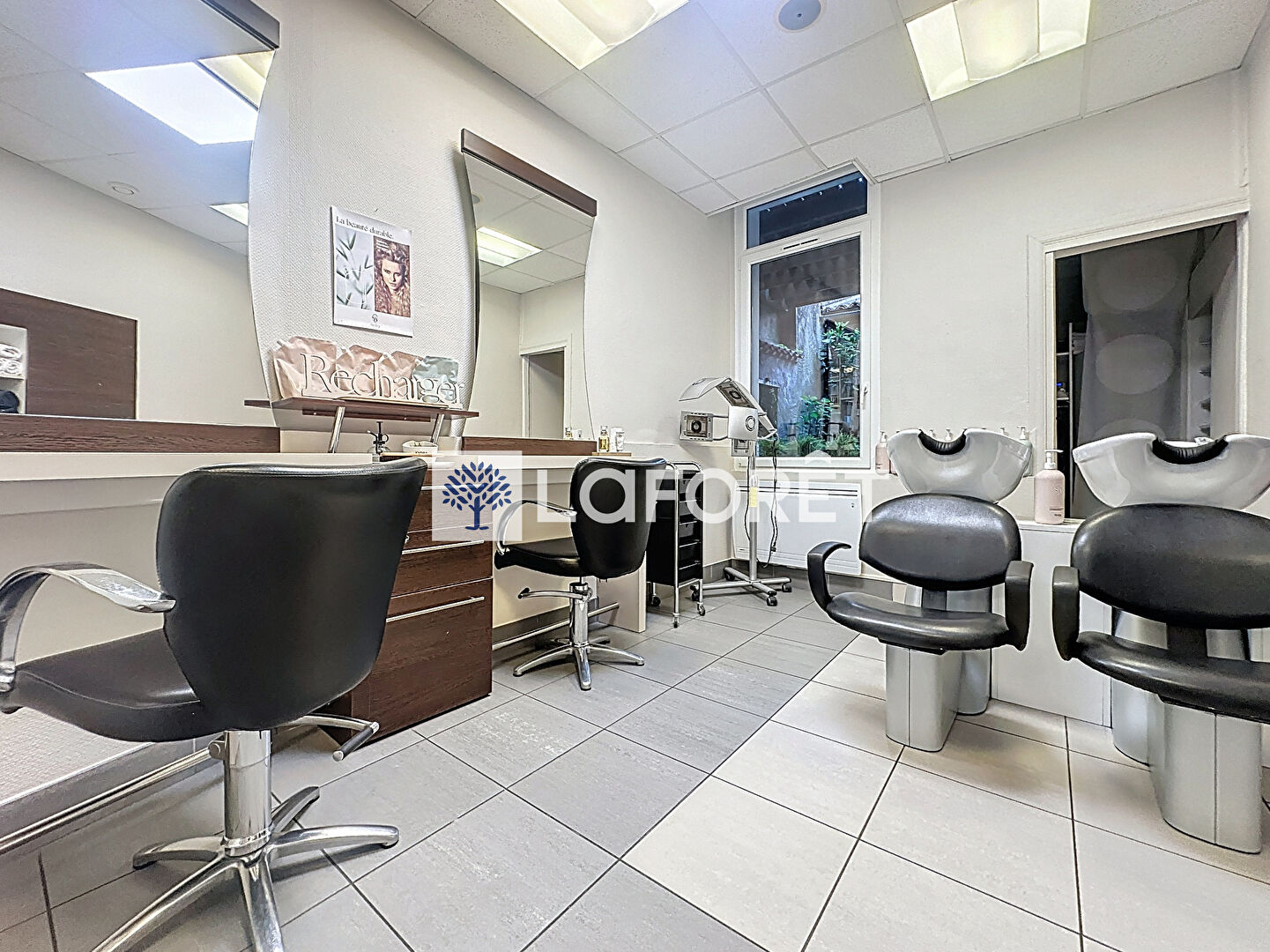 Le local commercial est actuellement loué 400 € HT et comprend un salon de coiffure de 43 m², une réserve, un WC ainsi qu'une cour.