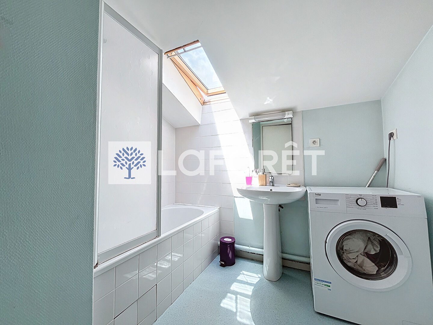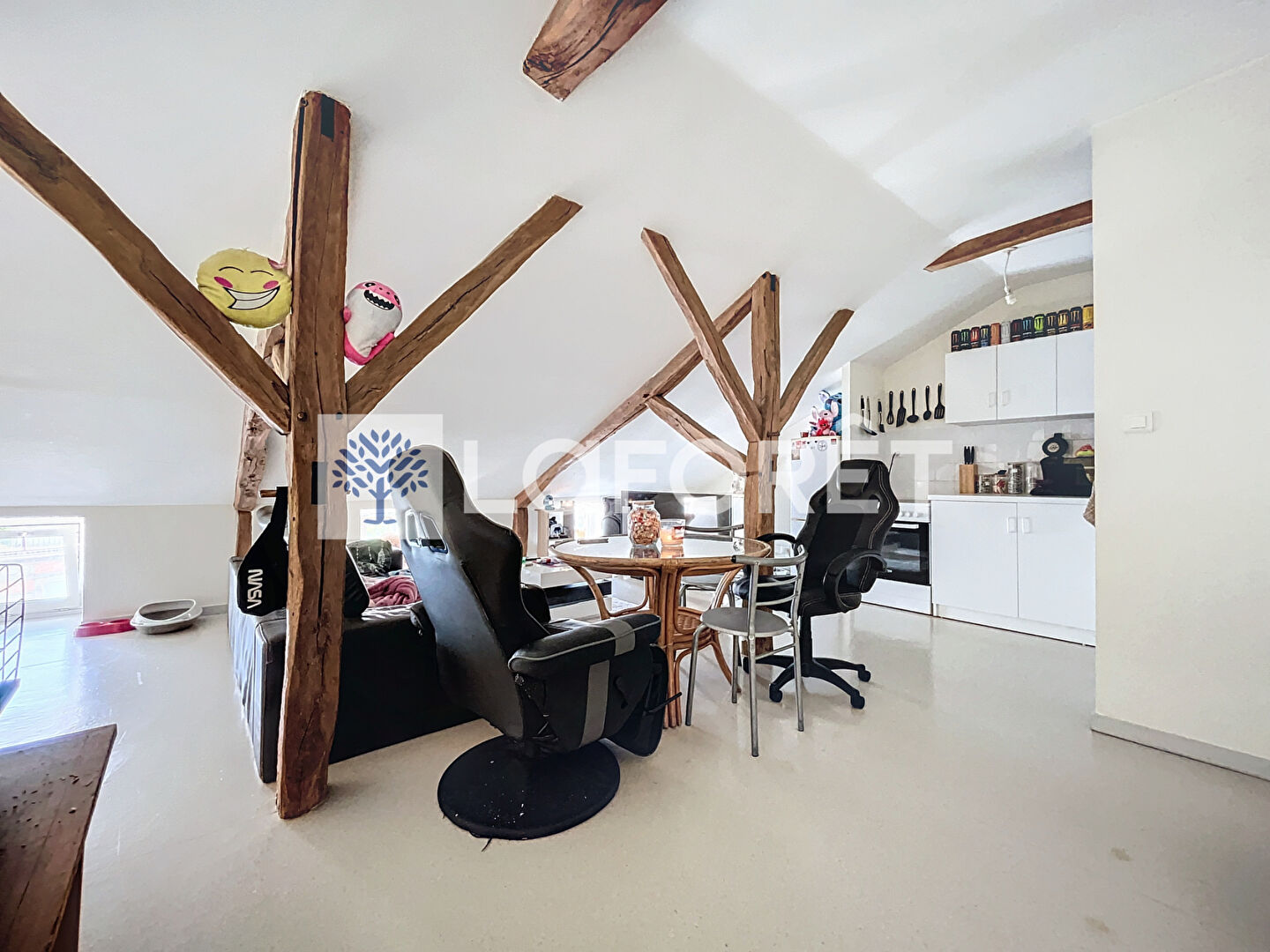 Second étage : Appartement de 54m² comprenant un salon-séjour avec coin cuisine aménagée, une chambre, une salle de bains et un WC. Ce logement est loué 355€/mois.