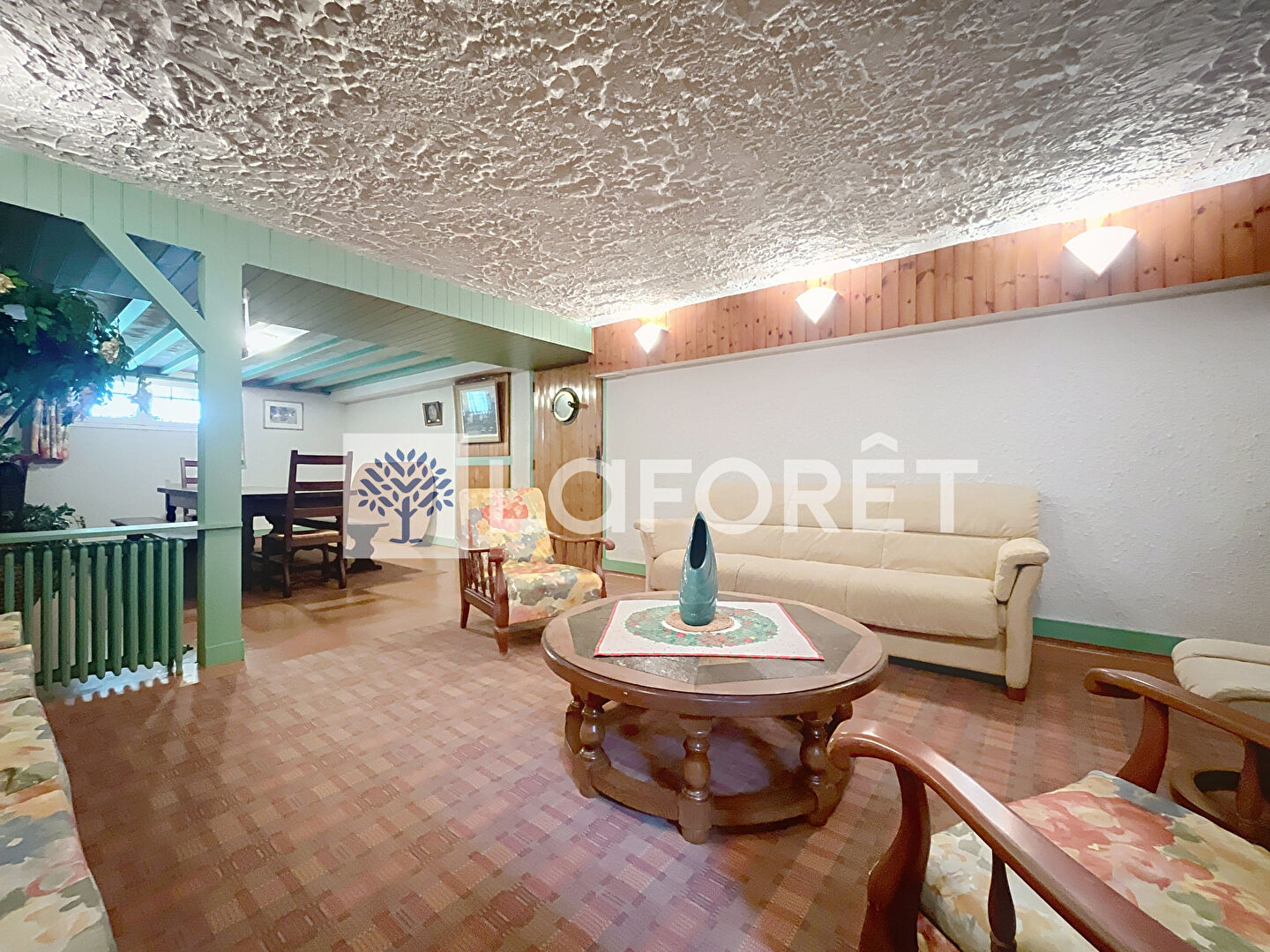 Au sous-sol : une salle de jeux ou de réception de 46 m2, une chambre, un WC, une chaufferie, une cave et un garage de 45 m2.