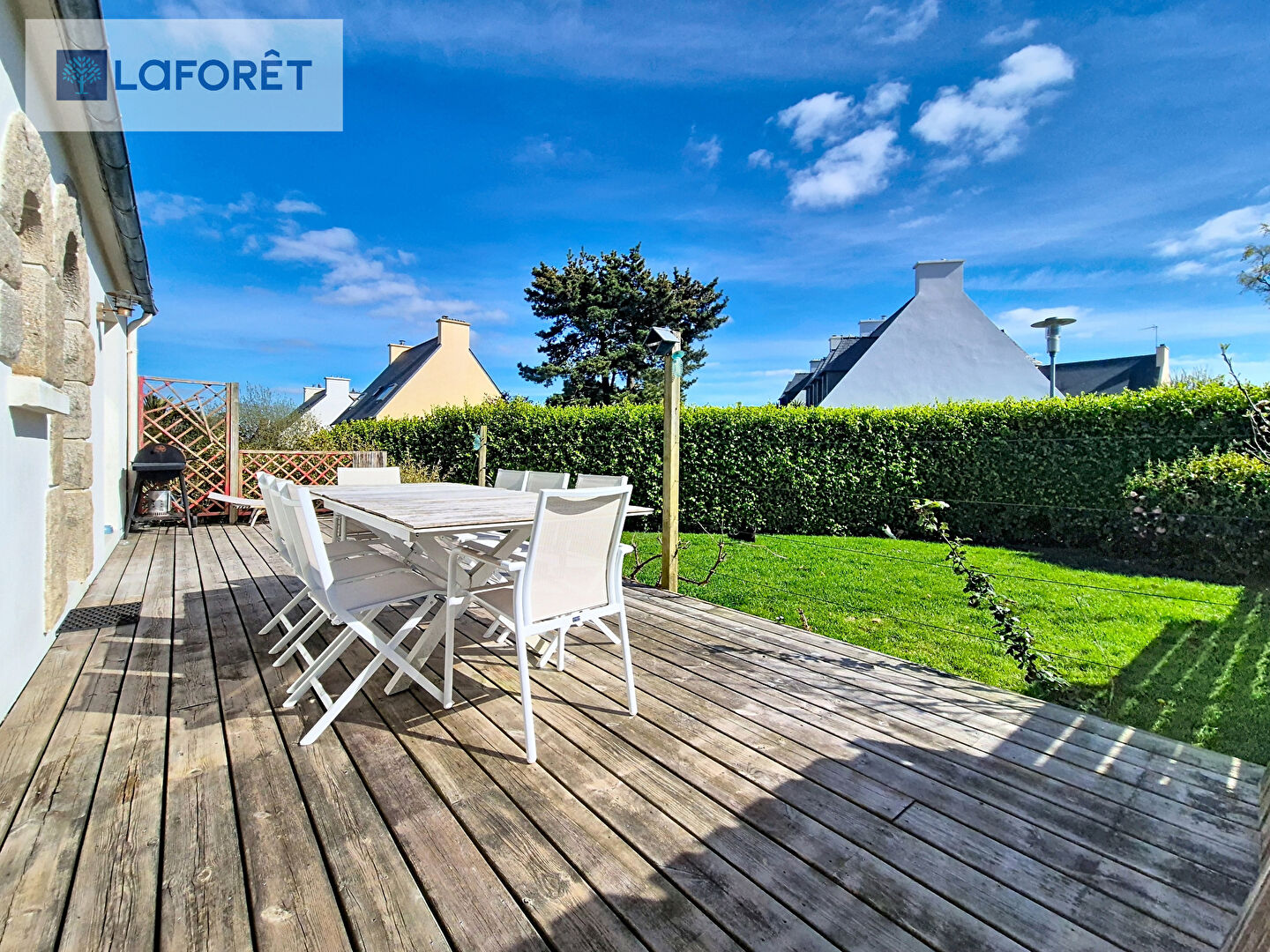 À l'extérieur, une grande terrasse et un jardin totalement clos exposé sud, bien orientée et facile à entretenir.