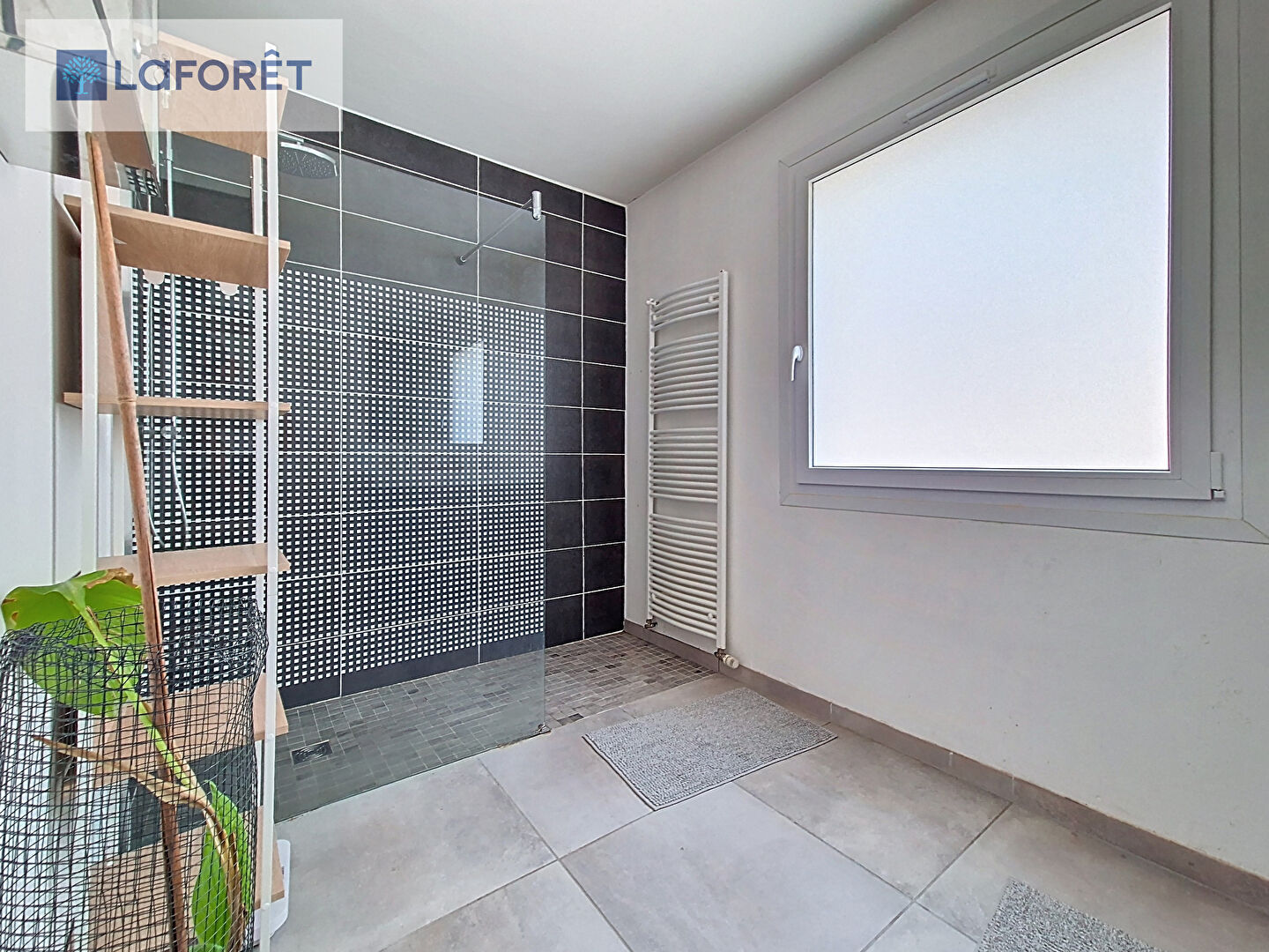 Le rez-de-chaussée se compose d'un grand salon-séjour lumineux en rez-de-jardin, d'une cuisine aménagée et équipée, d'une chambre avec dressing, d'une salle d'eau et d'un WC séparé.