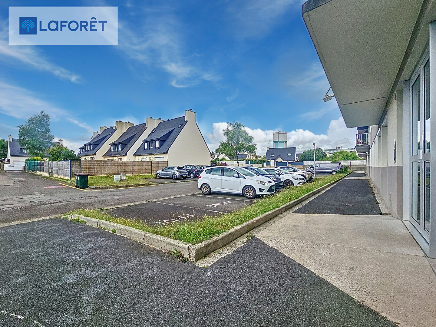 Stationnement privé et numéroté en bas de la copropriété.