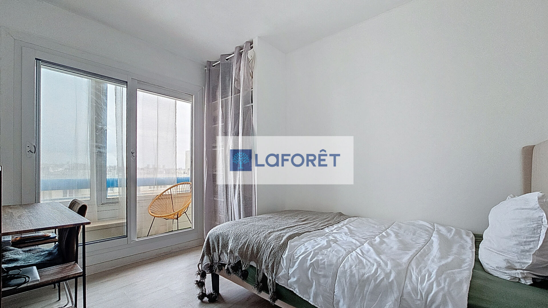 Il se compose d'une entrée, d'un salon , d'une cuisine aménagée et équipée, d'une pièce de vie, d'un WC, d' une salle d'eau et 4 chambres. Grands balcons fermés filants de chaque coté de l'appartement.