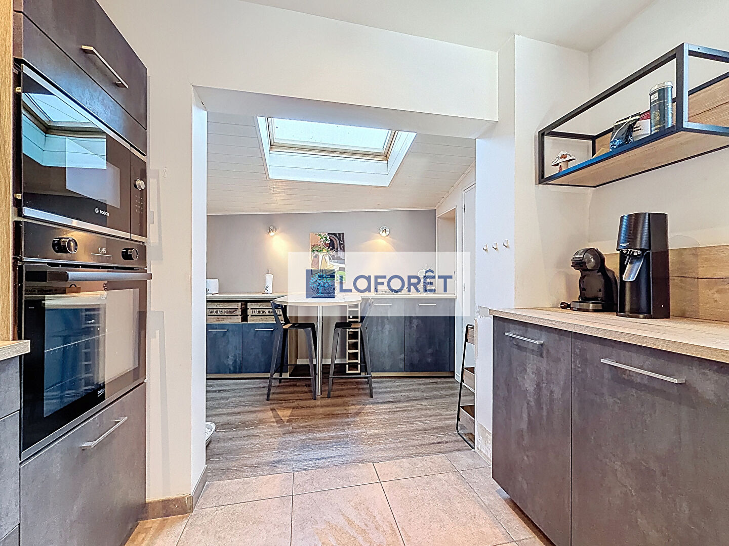 Édifiée sur un terrain de 370m², la maison s'ouvre au rez-de-chaussée sur une entrée accueillante desservant un salon séjour lumineux. Vous y trouverez également une cuisine aménagée et équipée avec un espace buanderie, ainsi qu'un bureau et un WC indépendant.