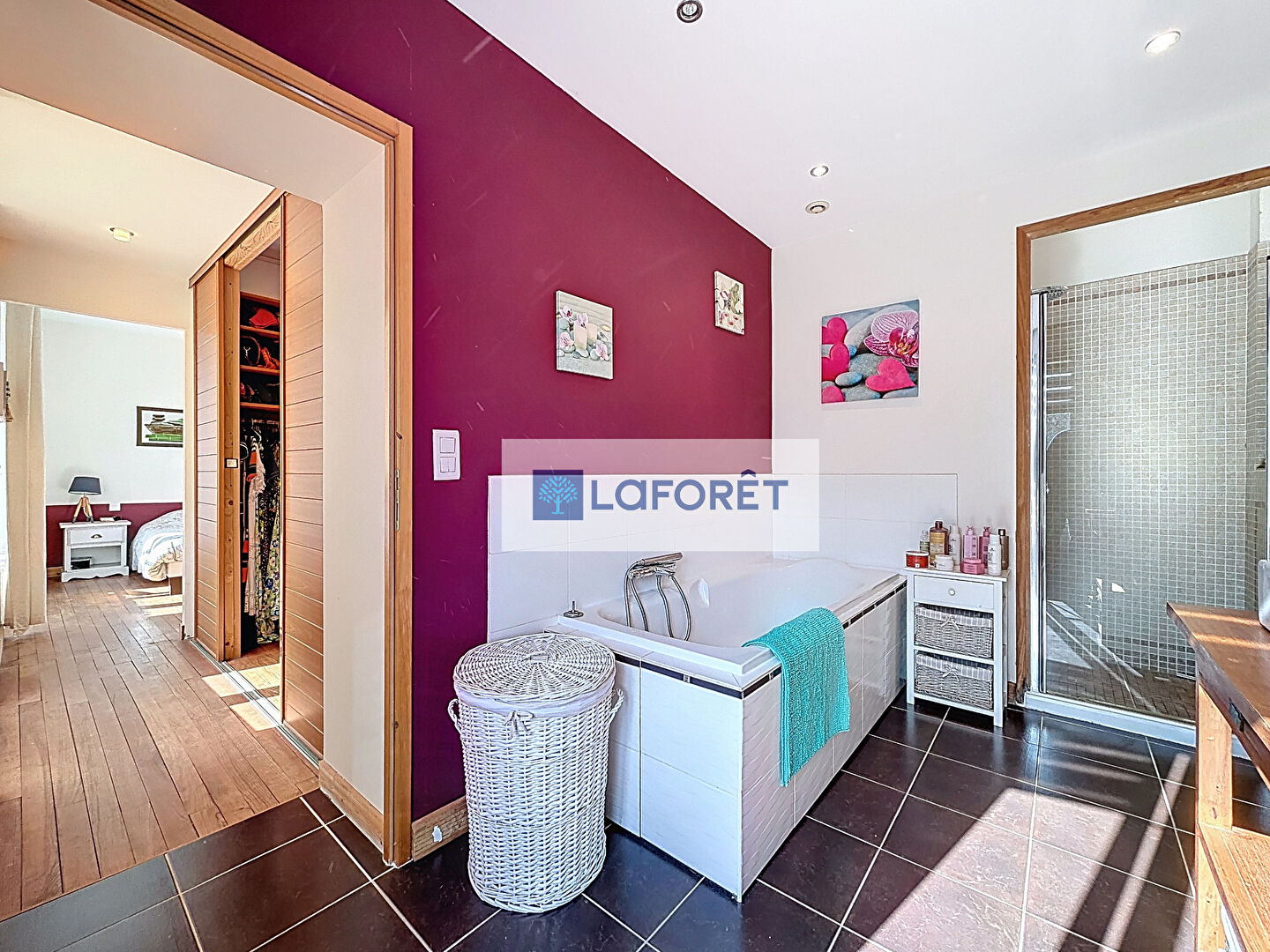 À l'étage, l'espace nuit se compose de quatre grandes chambres, dont une suite parentale avec salle de bains comprenant baignoire et douche et dressing , une 2eme salle d'eau et un bureau.