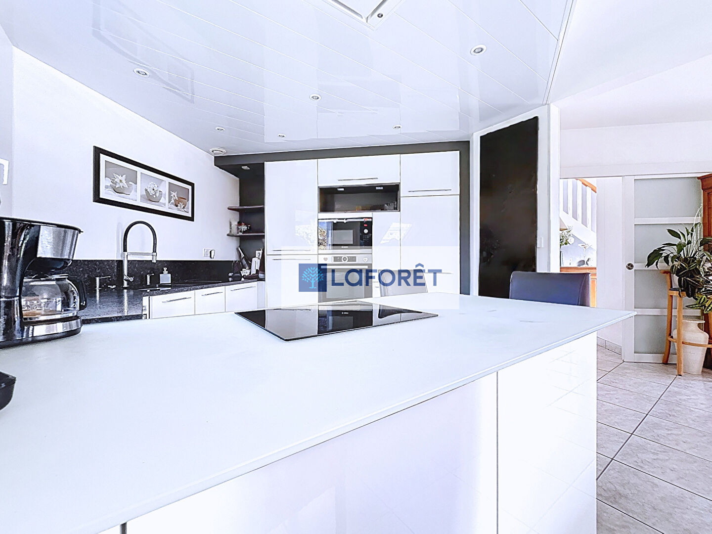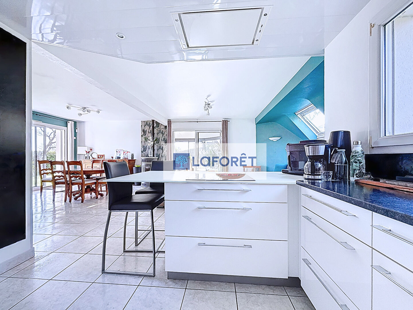 La cuisine ouverte, réalisé par un cuisiniste local réputé offre des matériaux de qualité et un espace parfaitement pensé pour les amateurs de cuisine et de convivialité.