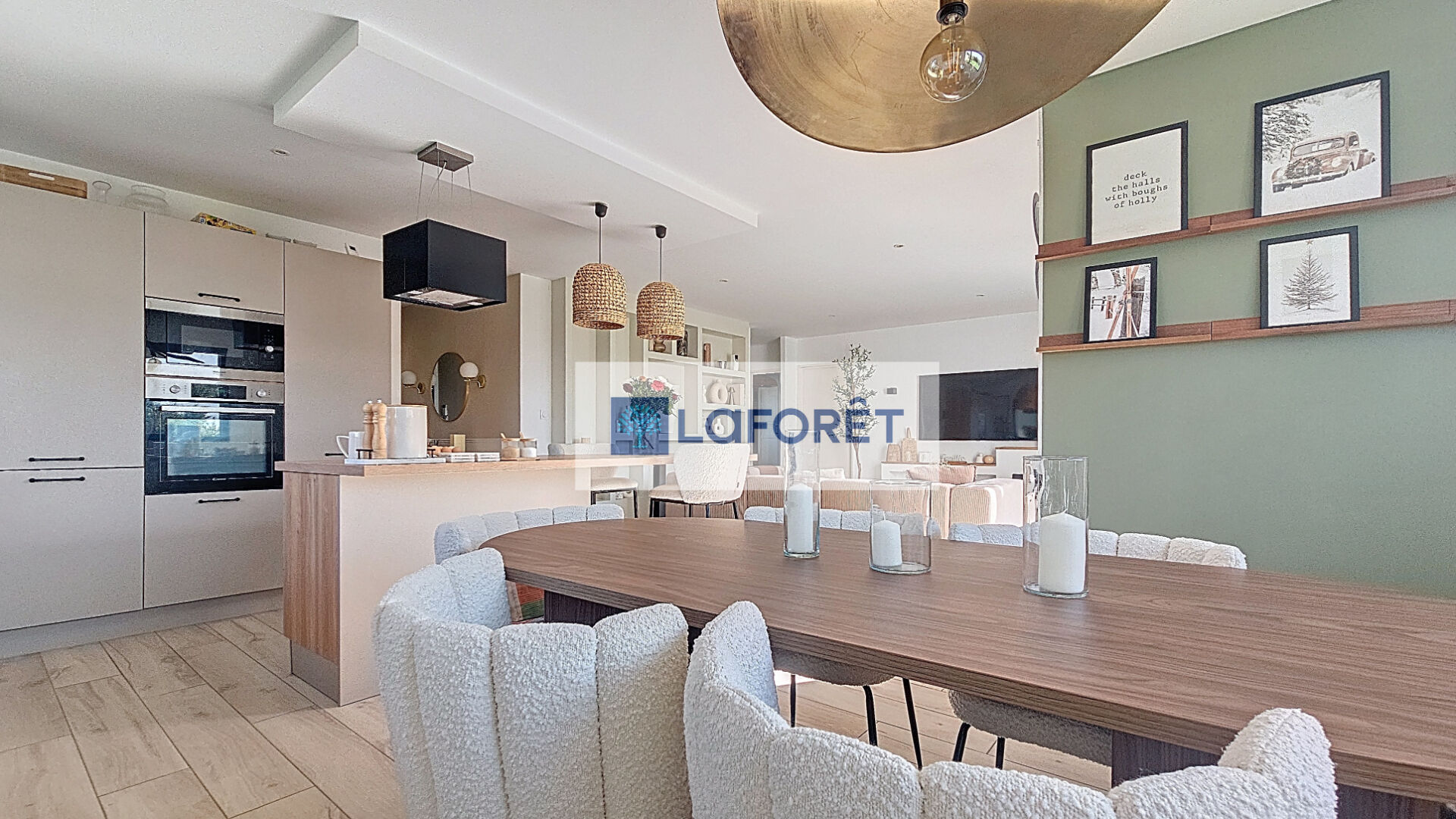 Dès l'entrée, vous découvrez une spacieuse pièce de vie baignée de lumière, composée d'un salon séjour élégant et d'un espace déjeuner convivial. La cuisine, entièrement aménagée et équipée, s'intègre parfaitement à cet ensemble, idéal pour recevoir et partager des moments privilégiés.