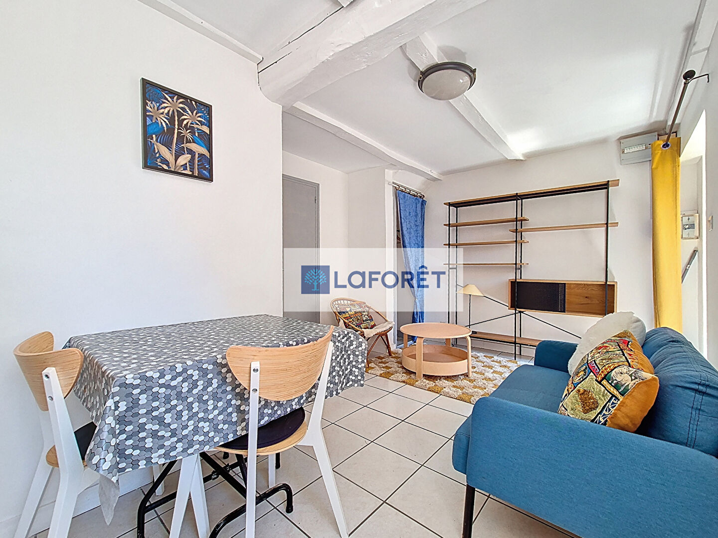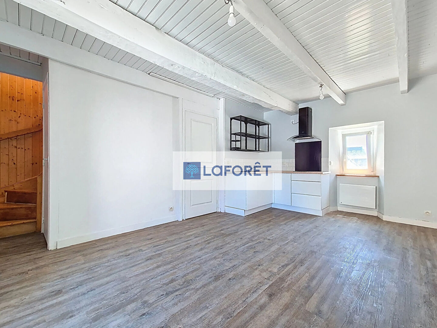 A l'étage, vous retrouvez un duplex, composé d'un salon, d'une cuisine aménagée et équipée, d'une salle d'eau avec WC, d'un bureau et d'une chambre.