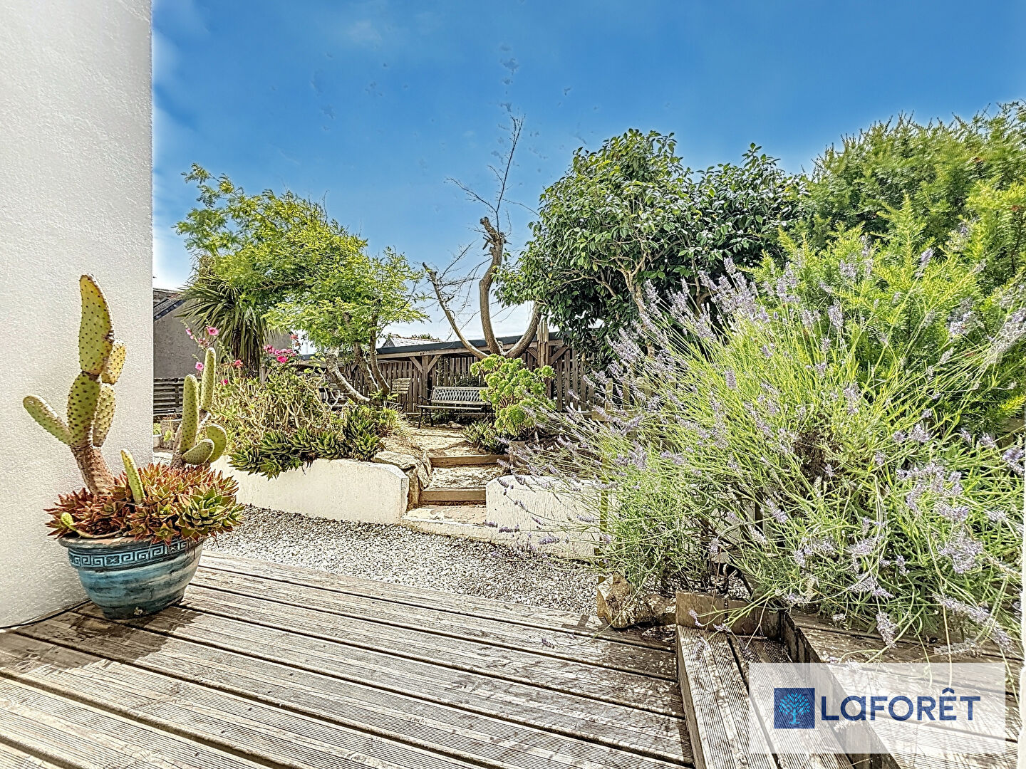 À l'extérieur, profitez d'un jardin arboré, clos et sans aucun vis-à-vis, agrémenté de trois terrasses idéales pour bénéficier d'un ensoleillement optimal à toute heure.