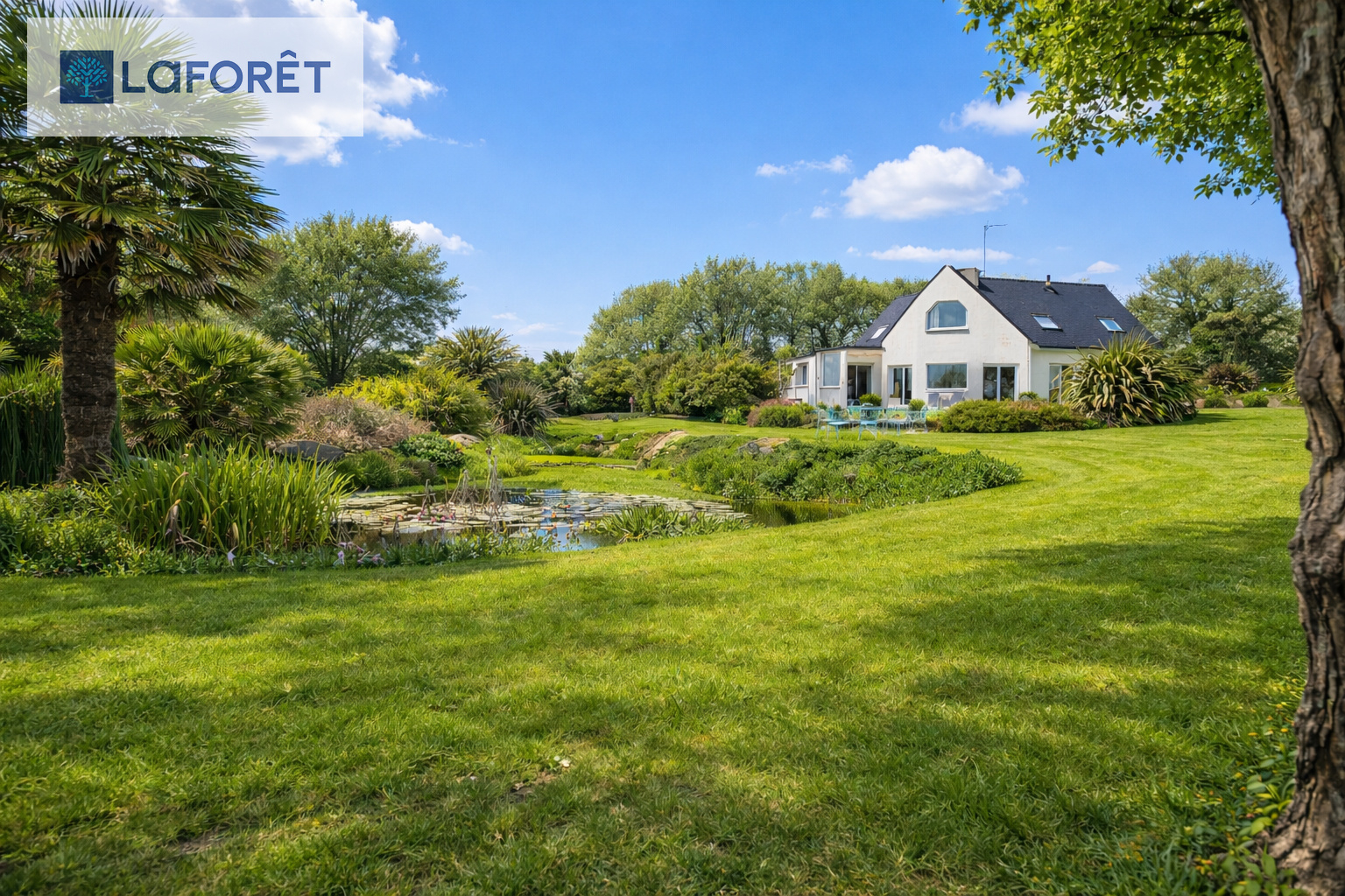 À l'extérieur, le parc arboré, soigneusement entretenu, offre un cadre de vie rare.