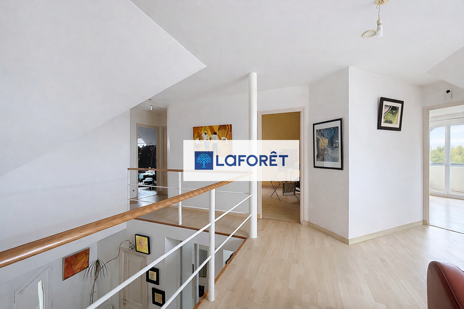 À l'étage, une mezzanine spacieuse structure l'espace nuit et distribue harmonieusement quatre chambres, un bureau et une salle de bain et un wc.