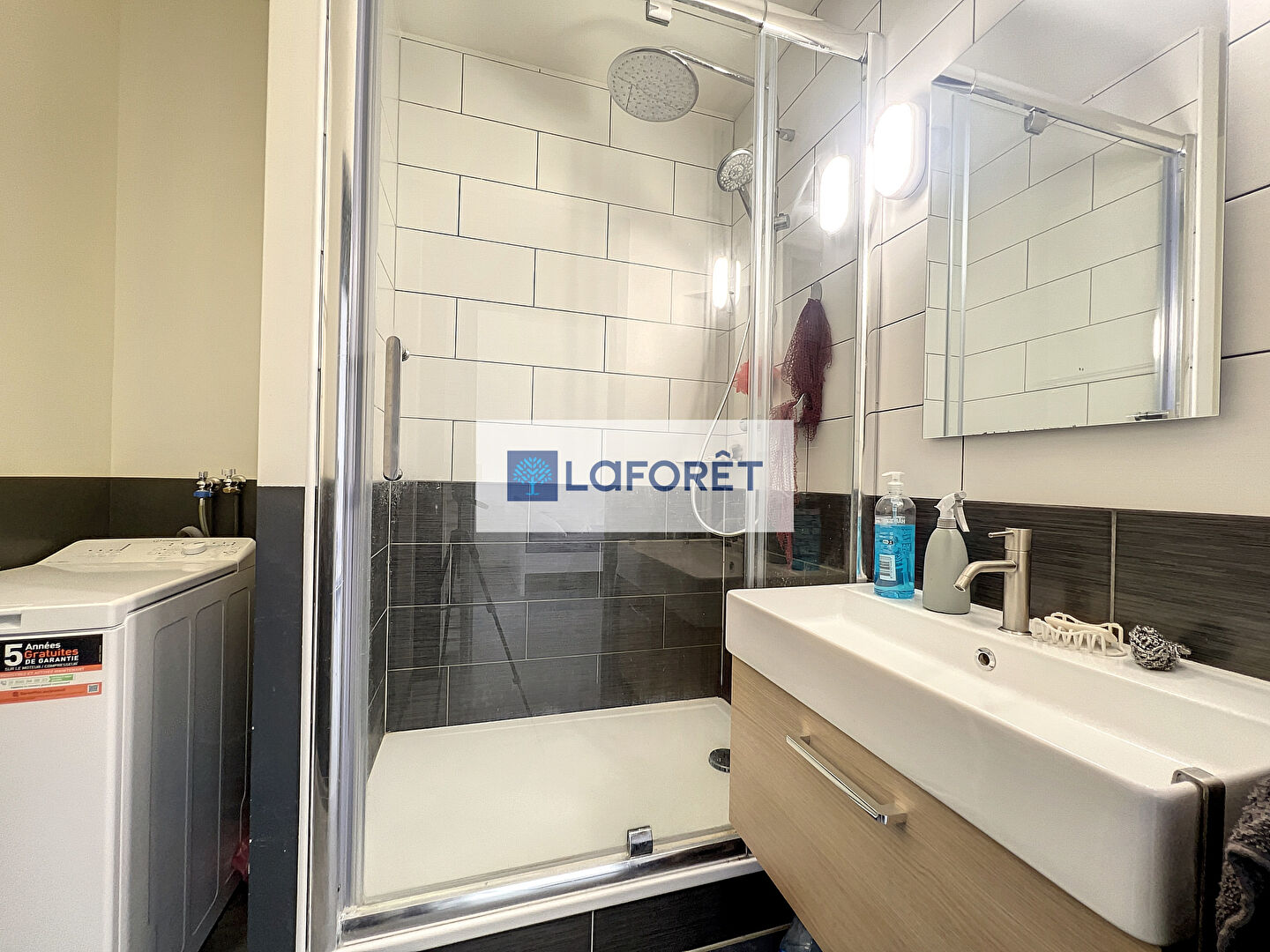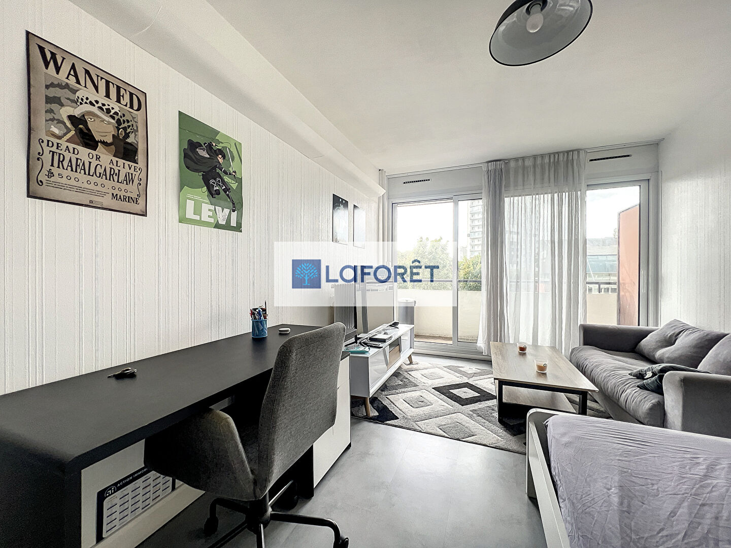 Il se compose d'une cuisine entièrement aménagée et équipée, une pièce de vie lumineuse avec balcon et rangements, une salle d'eau et WC.