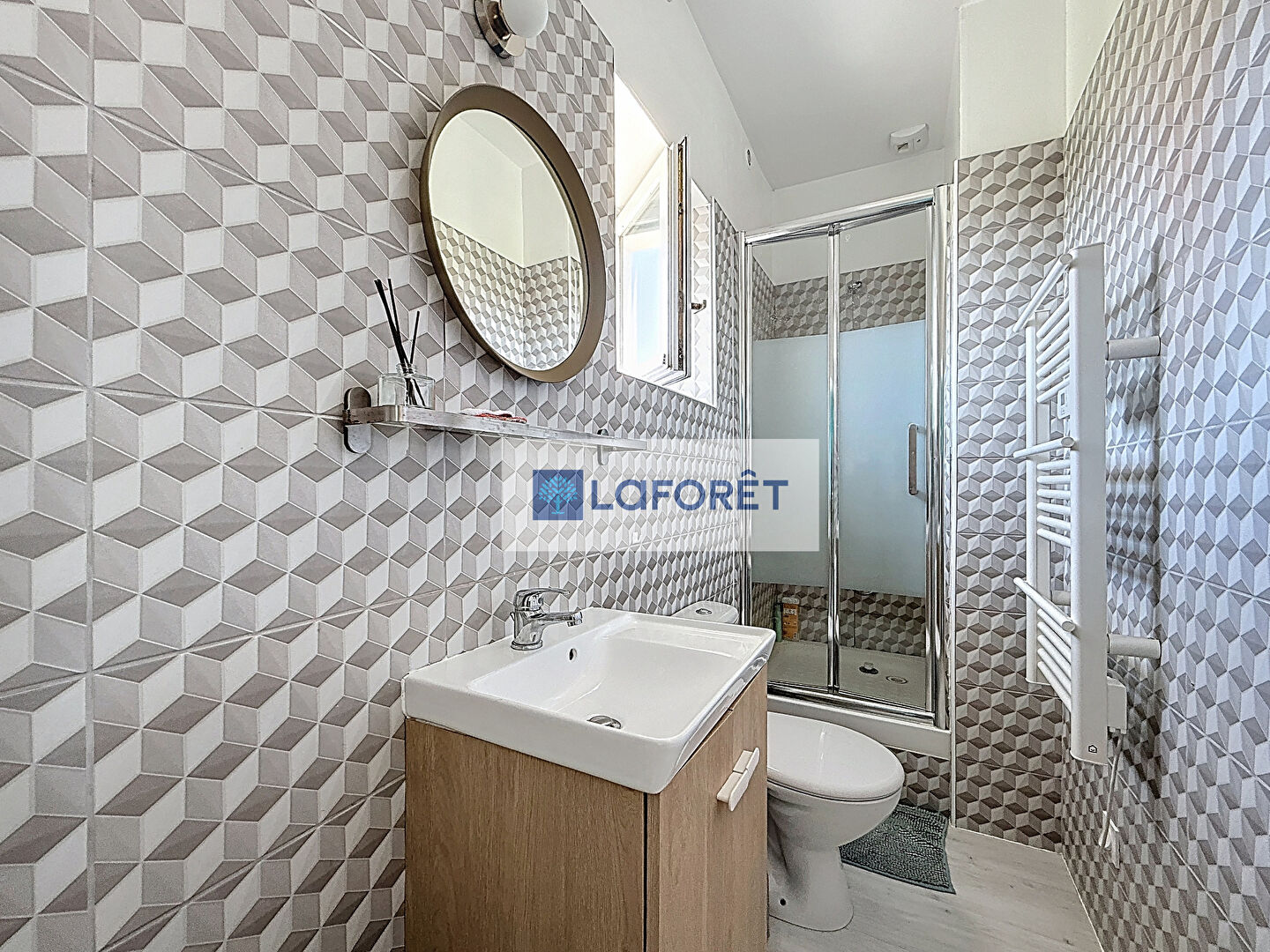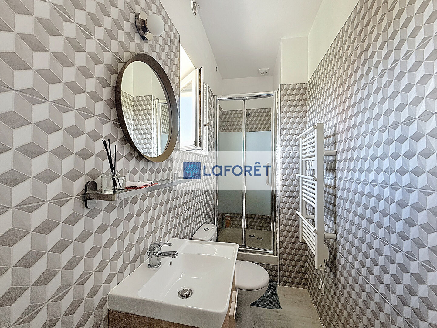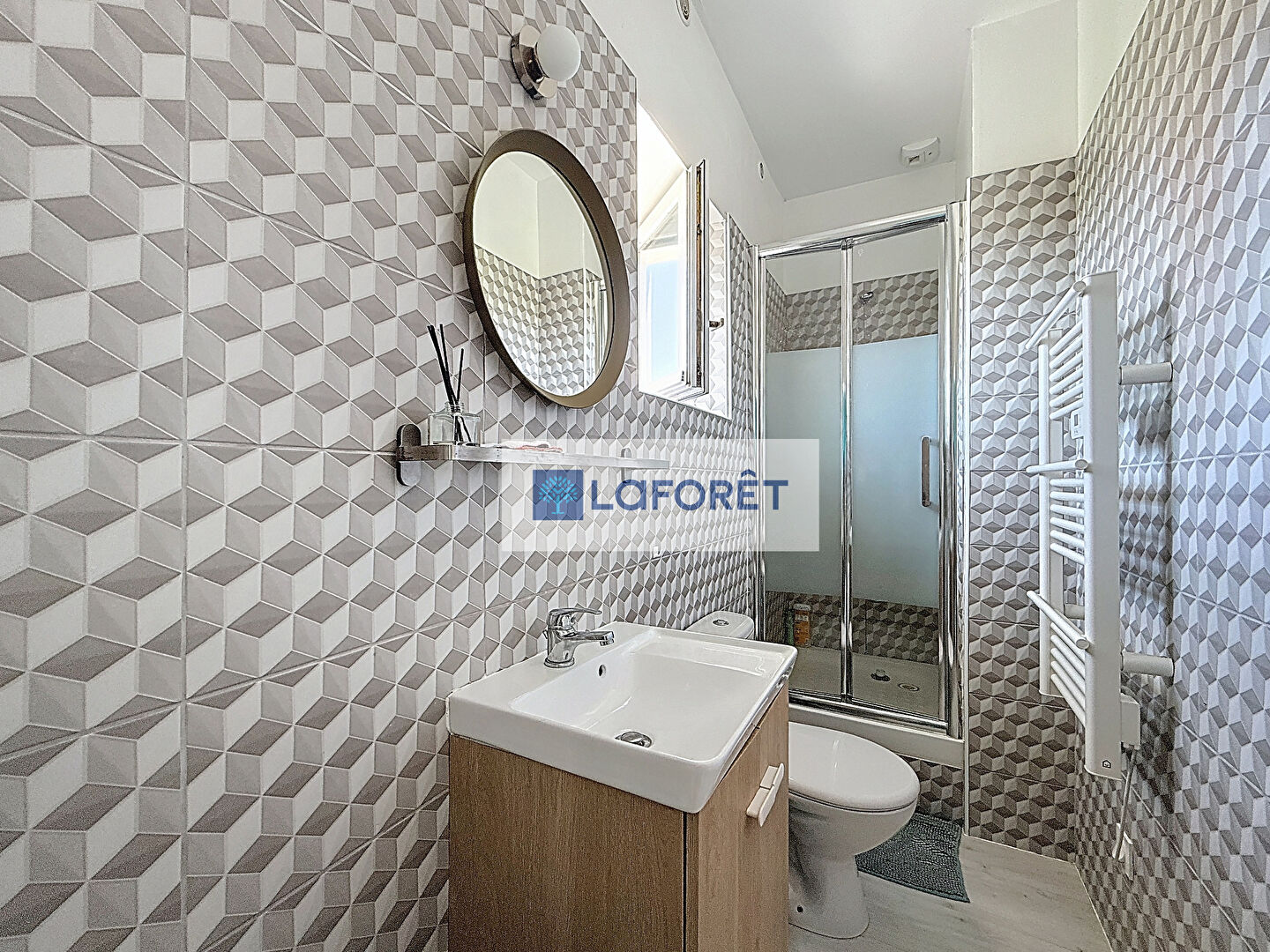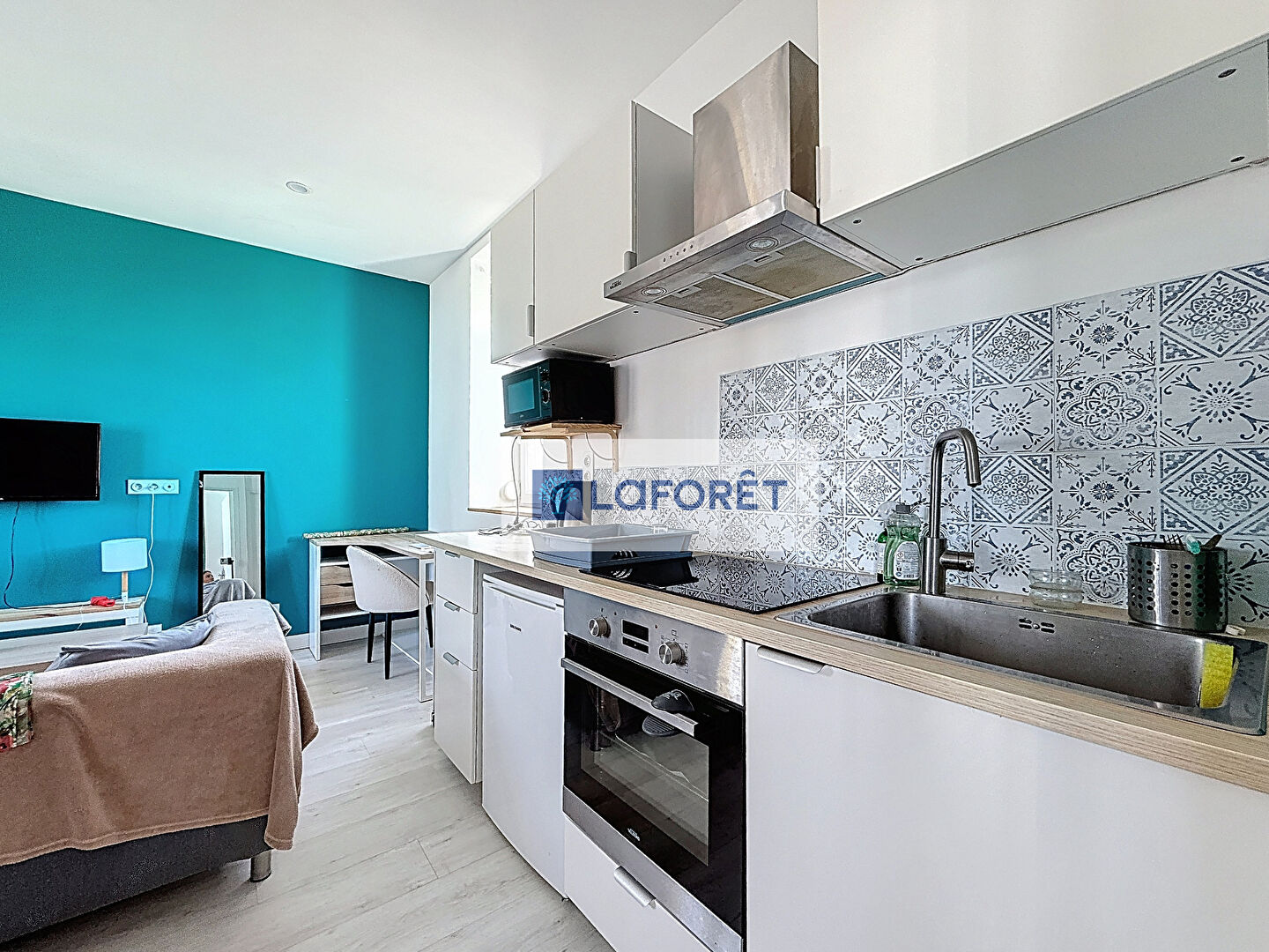 Il comprend une cuisine équipée ouverte sur la pièce de vie, une chambre avec placard et une salle d'eau avec WC.