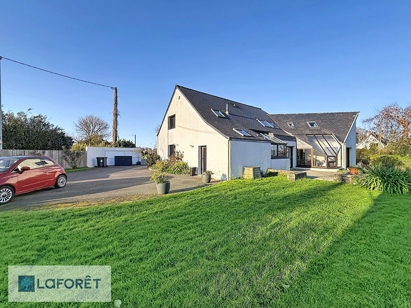 À l'extérieur, vous bénéficierez d'un double garage fonctionnel ainsi que de plusieurs places de stationnement.