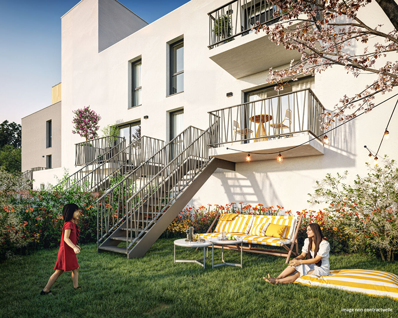 Cette résidence à taille humaine se compose de seulement 14 appartements, répartis sur trois niveaux (R+2 avec attique). Son architecture contemporaine s'accompagne de prestations soignées : chaque logement dispose d'un espace extérieur privatif ? jardin, terrasse ou balcon ? ainsi que d'un accès à un hall sécurisé avec ascenseur.