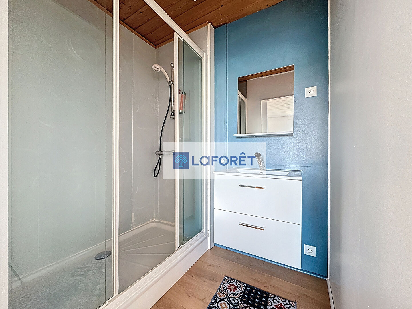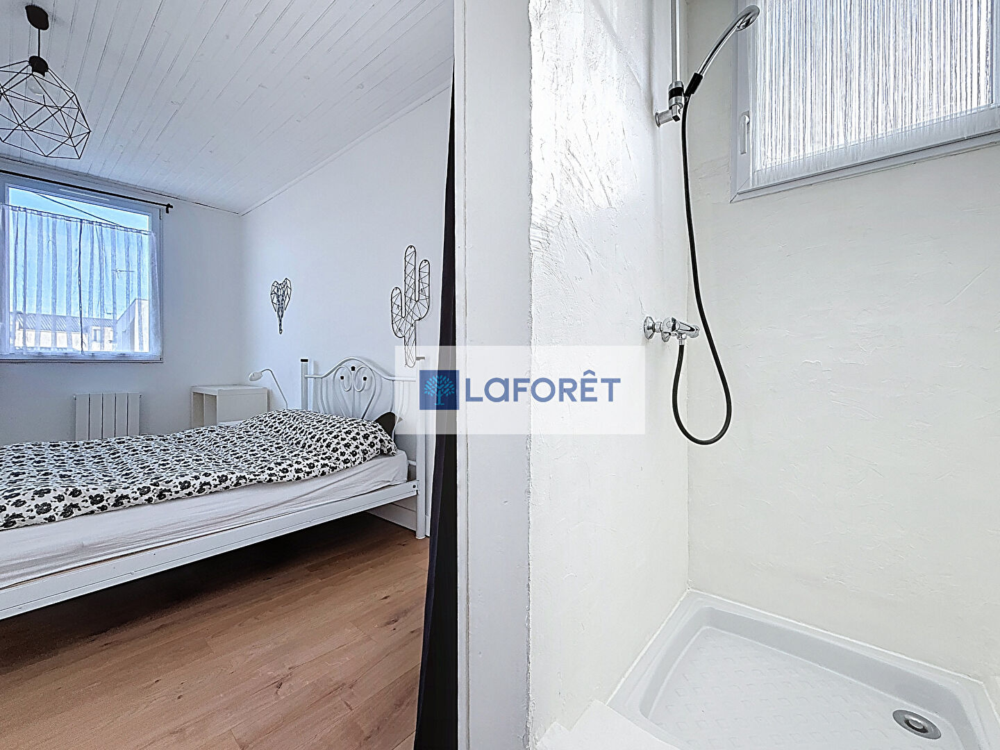 Elle se compose au rez-de-chaussée, d'une entrée desservant une pièce de vie lumineuse, une cuisine entièrement aménagée et équipée, un WC indépendant, une salle d'eau ainsi qu'une chambre de 15 m².
