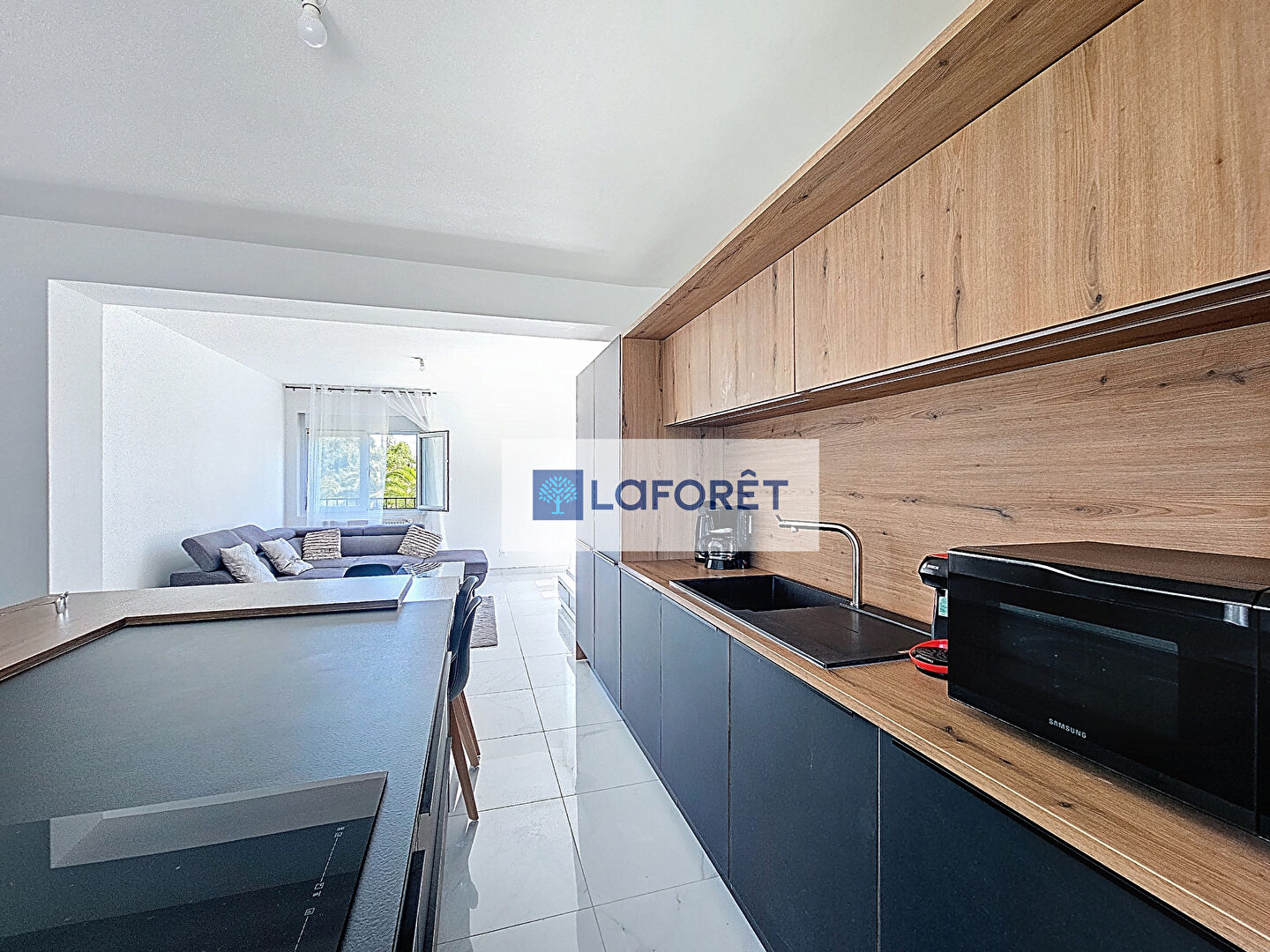 Elle se compose d'une pièce de vie lumineuse ouverte sur une cuisine haut de gamme entièrement aménage et équipée.