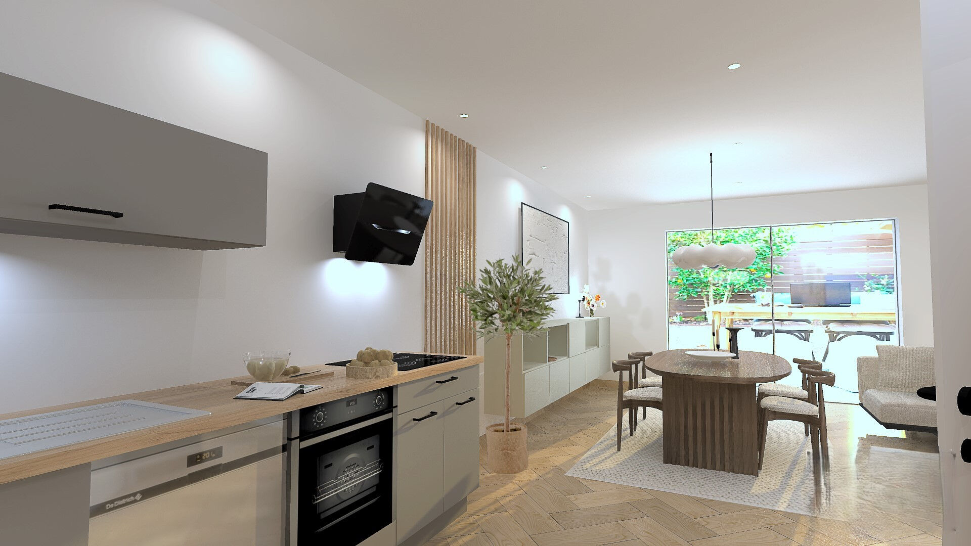 Il se compose d' une cuisine, une chambre, une salle d'eau et un grand coin salon de 25,35 m², pour une surface habitable totale de 59,68 m² . Le double vitrage assure le calme et les normes BBC garantissent une faible consommation d'énergie grâce à une très bonne isolation. Un petit balcon permet de profiter de l'extérieur.