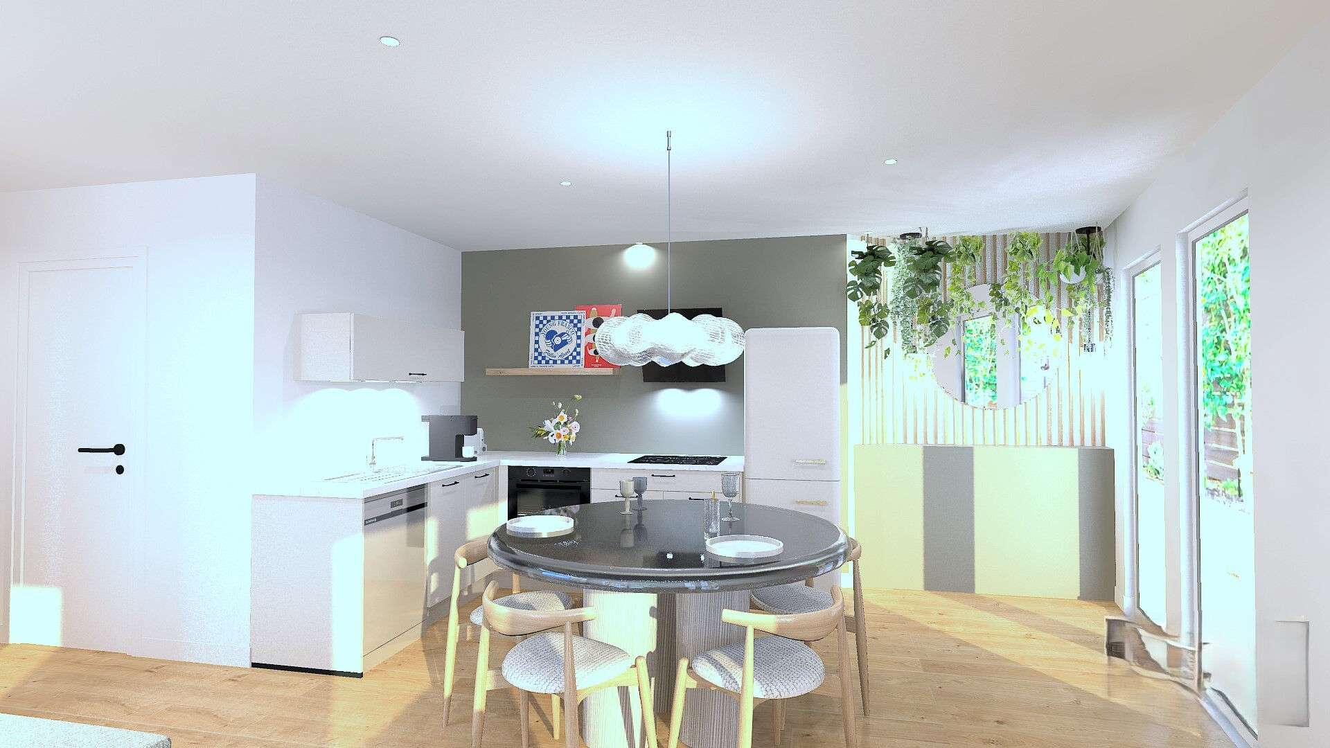 Il se compose d' une cuisine, une chambre, une salle d'eau et un grand coin salon de 25,35 m², pour une surface habitable totale de 59,68 m² . Le double vitrage assure le calme et les normes BBC garantissent une faible consommation d'énergie grâce à une très bonne isolation. Un petit balcon permet de profiter de l'extérieur.