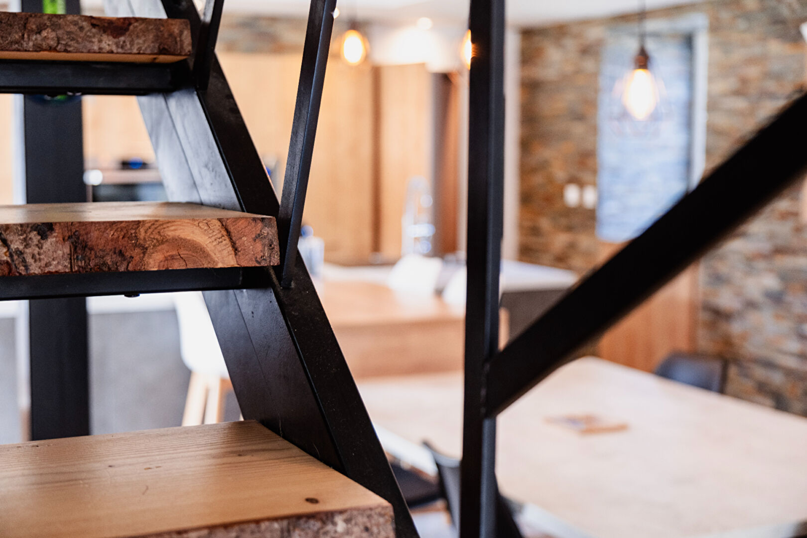 A l'étage : Quatre chambres, chacune bénéficiant de sa mezzanine, idéales pour optimiser l'espace et une salle de bains.