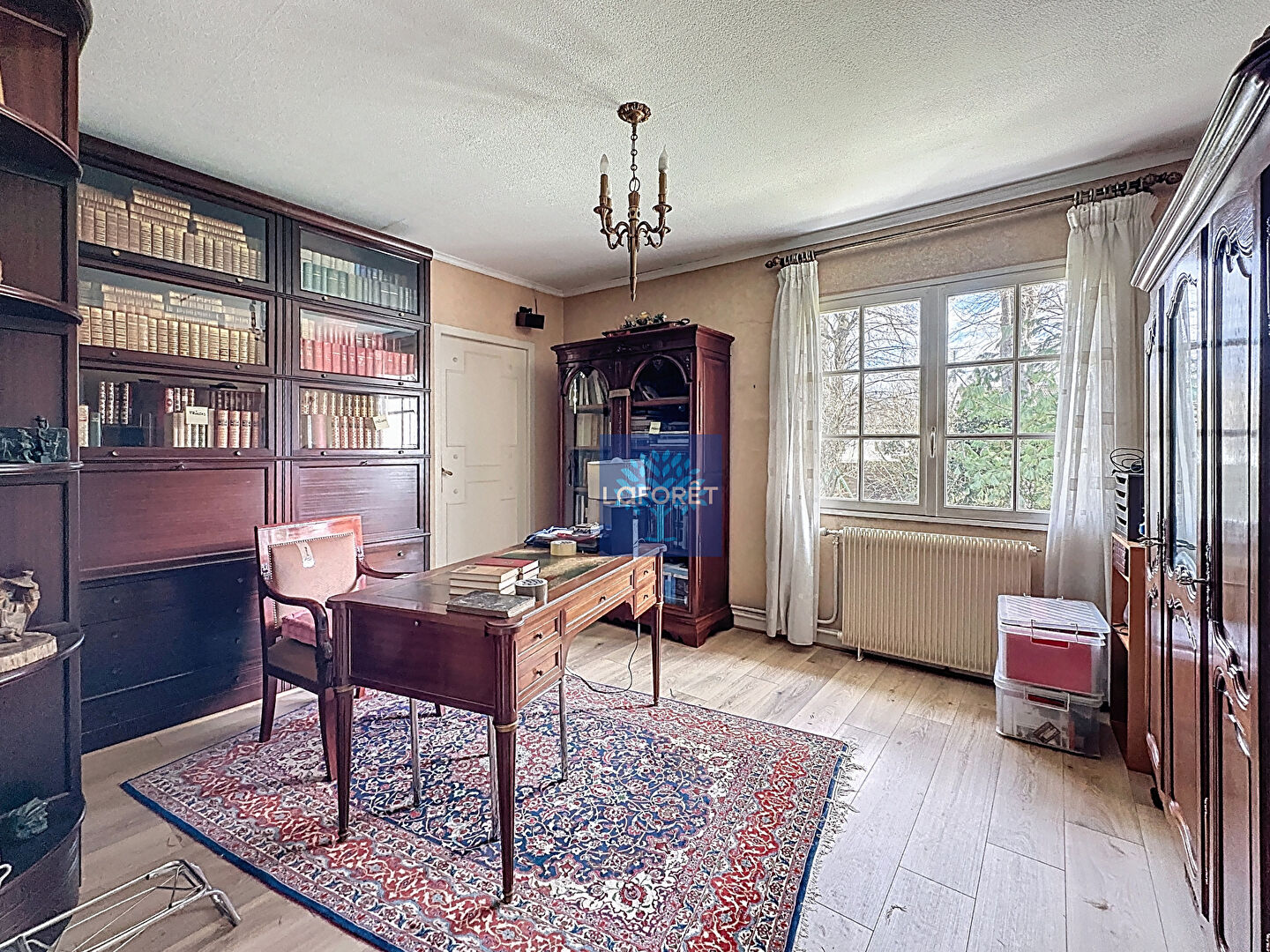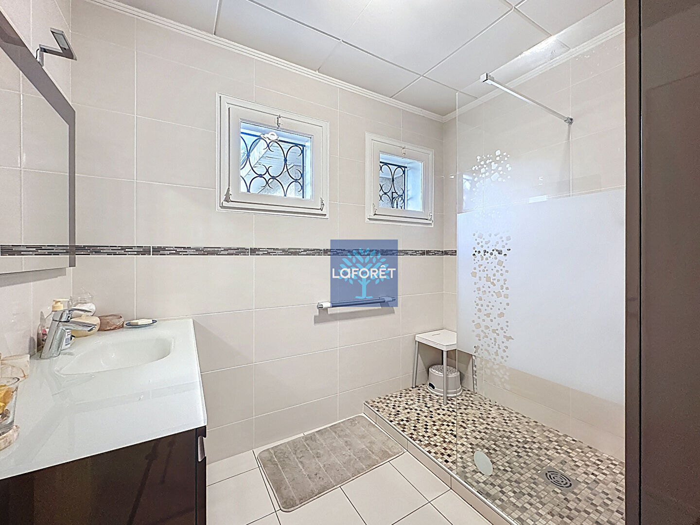 PARC DU CAROUGE - Dans un cadre calme et verdoyant, venez découvrir cette belle maison de plain-pied offrant : belle entrée, belle pièce de vie de plus de 37 m², cuisine indépendante aménagée, espace bureau, dégagement desservant quatre chambres dont une avec lave-mains, salle d'eau et wc séparé. Nombreux placards de rangement. Combles pour stockage.
