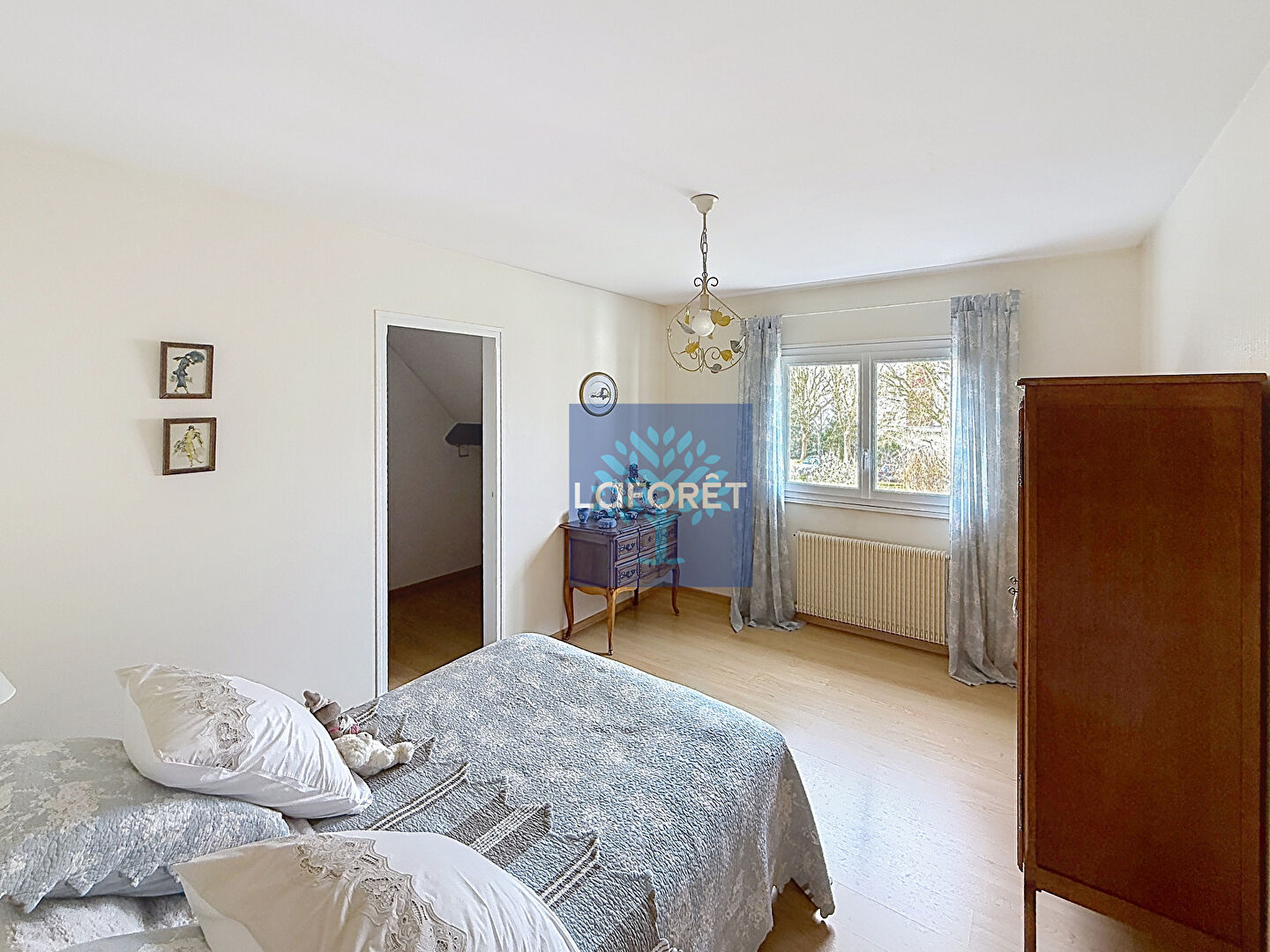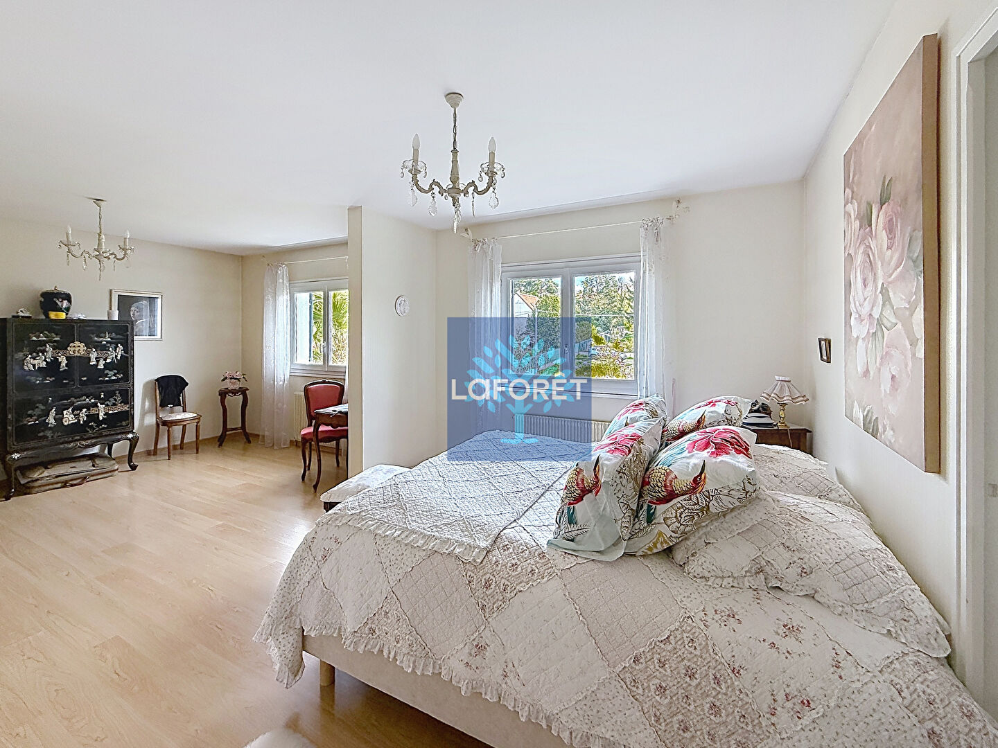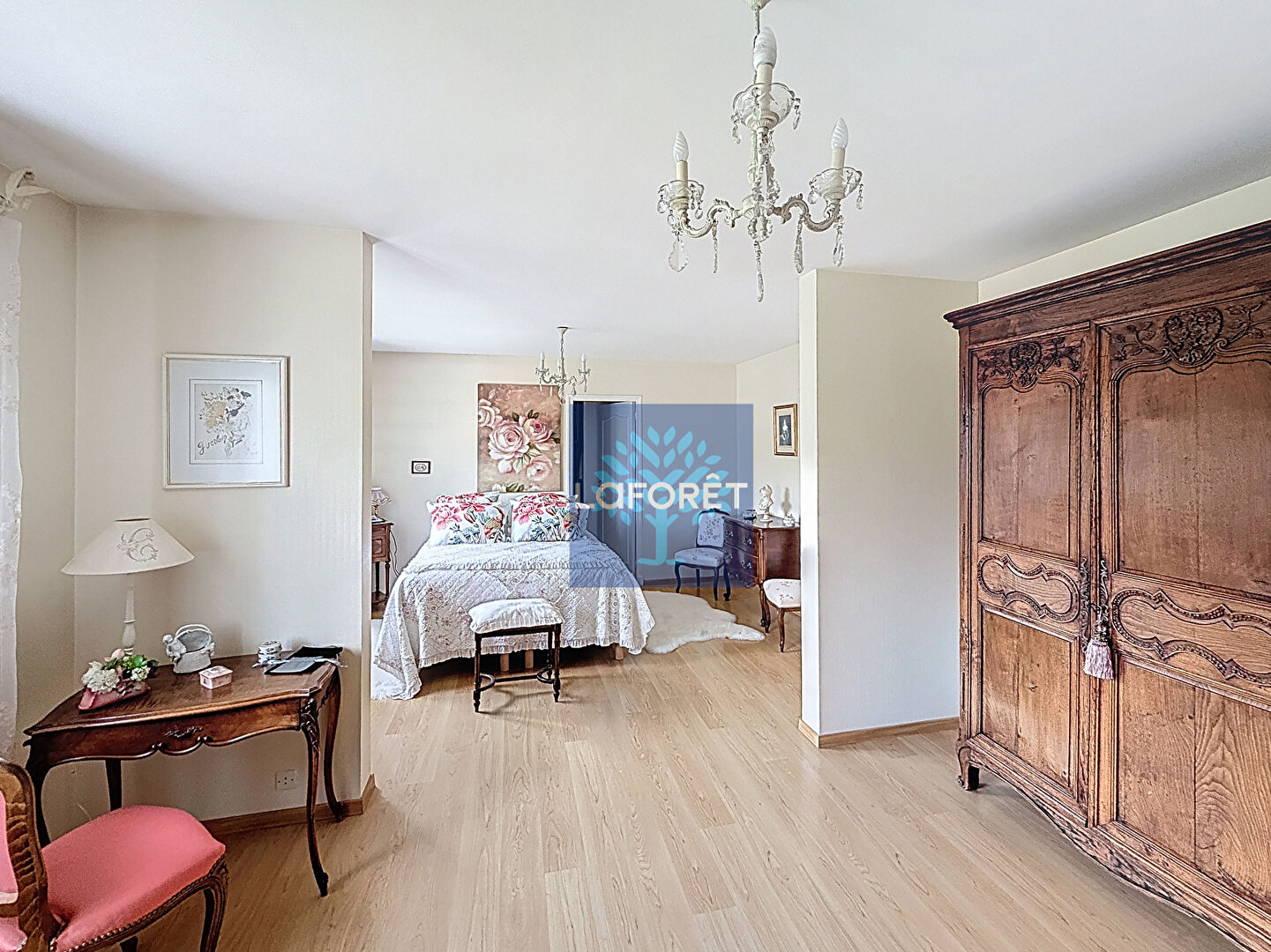 À l'étage : Un palier distribue trois belles chambres avec rangements, dont une superbe suite parentale d'environ 34 m² disposant de deux dressings aménagés, offrant un espace nuit confortable et privilégié.