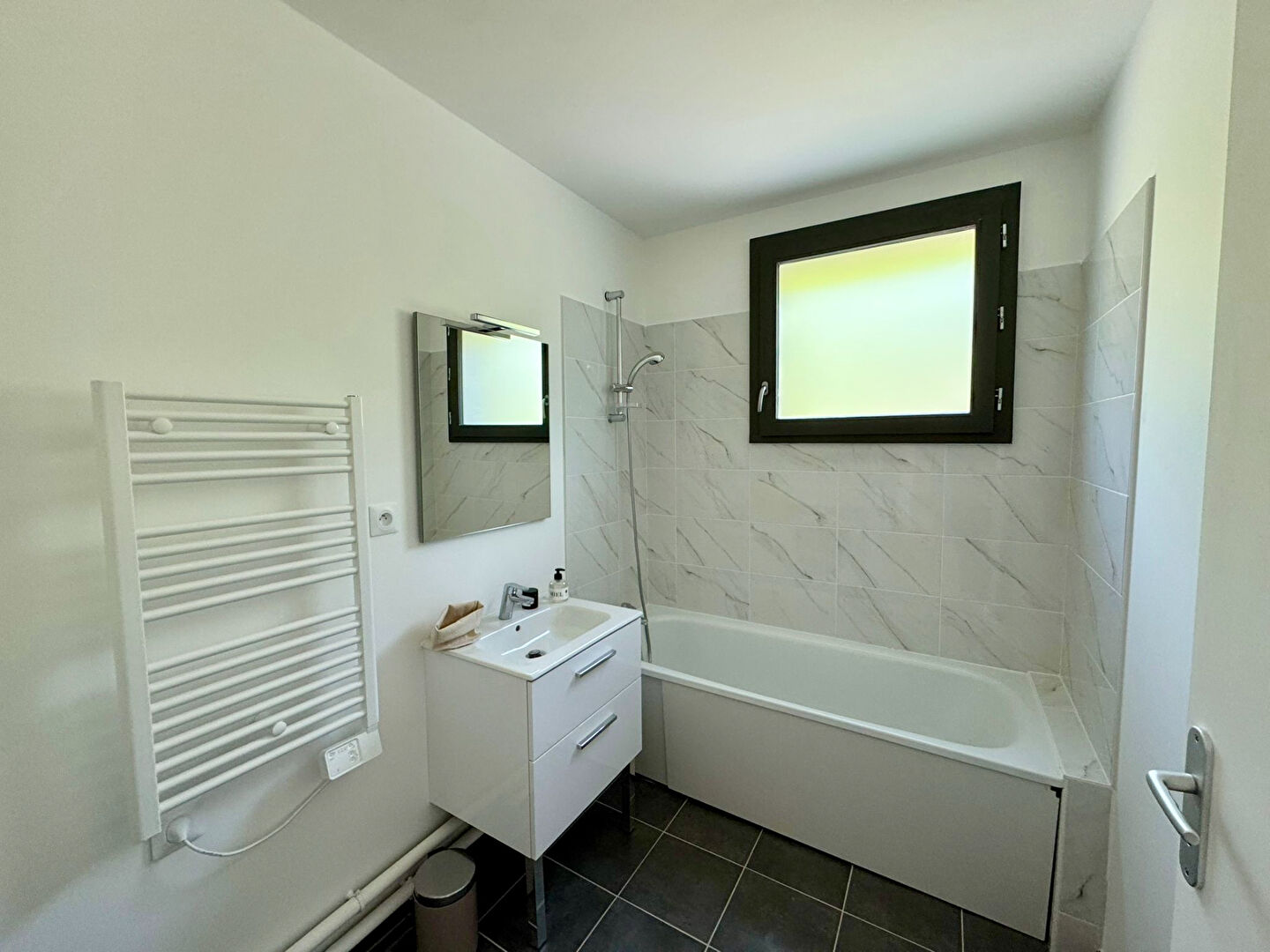 Entrée avec placard aménagé, belle pièce de vie de 28m2 avec cuisine ouverte aménagée et équipée, dégagement avec placard aménagé, salle de bains avec wc et équipée d'une machine à laver et d'un sèche serviette , deux chambres.