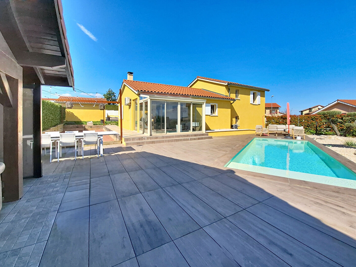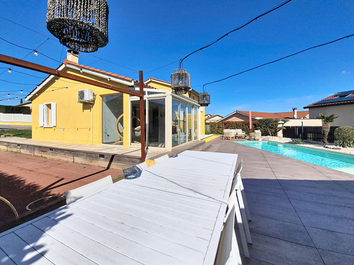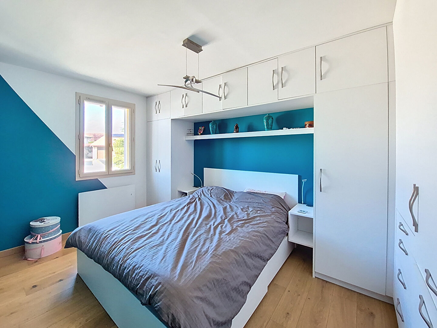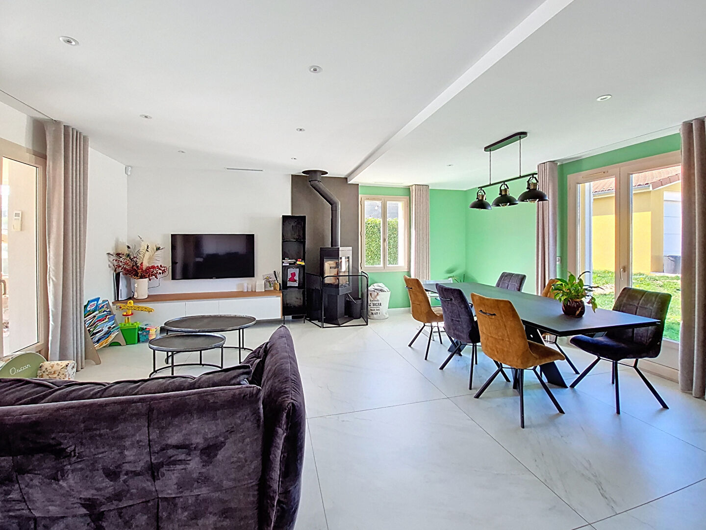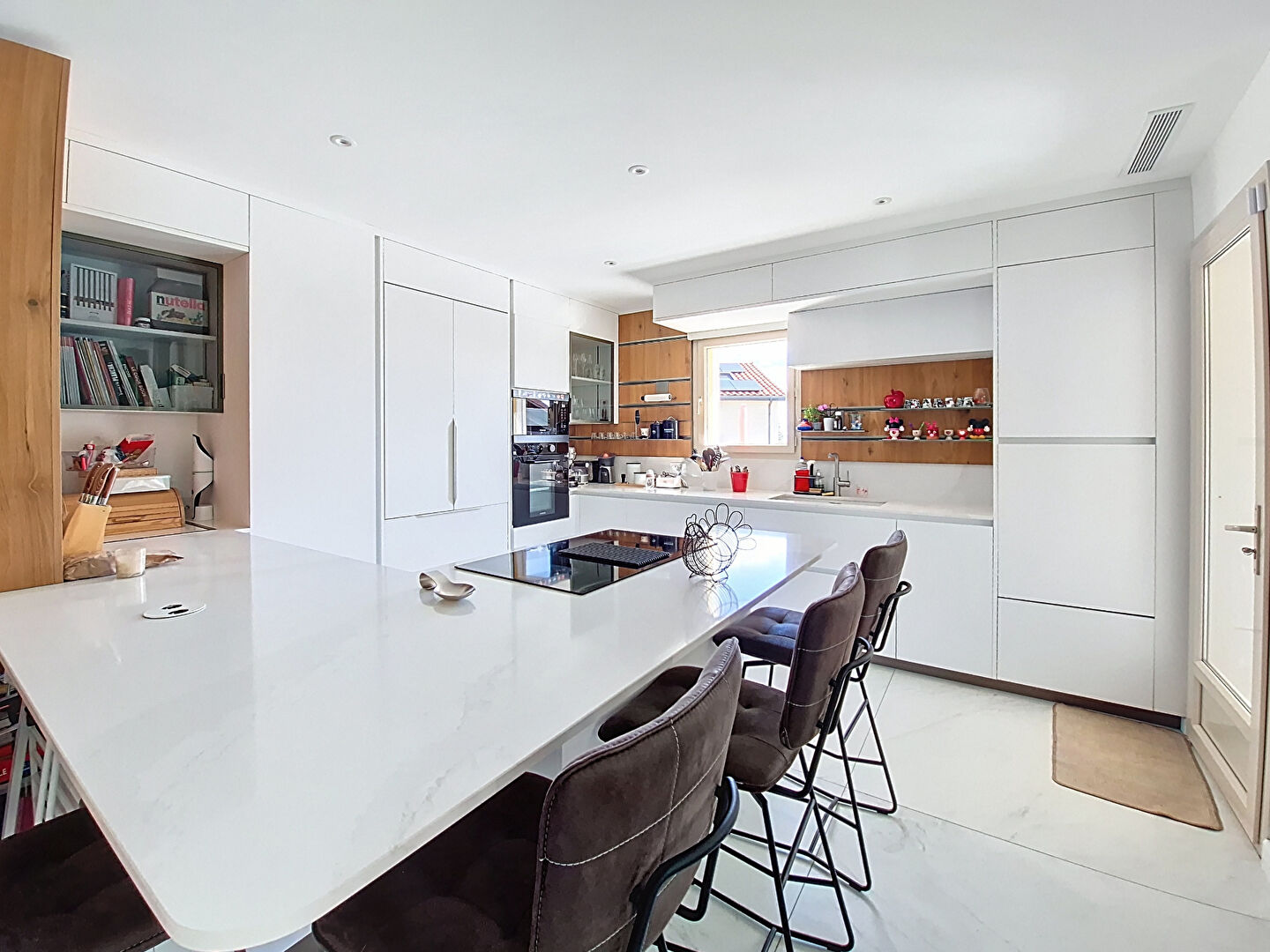 Prestations contemporaines et haut de gamme pour cette villa entièrement rénovée: cuisine US équipée, salon-séjour triple exposition bénéficiant d'un acces de plain-pied au terrain, 4 chambres plus bureau, agencement optimisé pour la vie de famille et le télétravail.