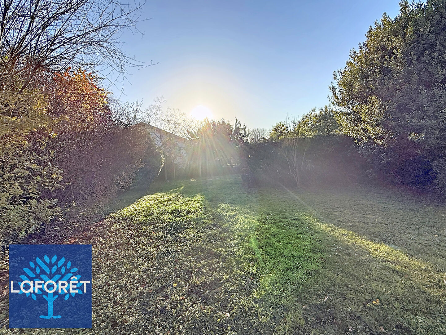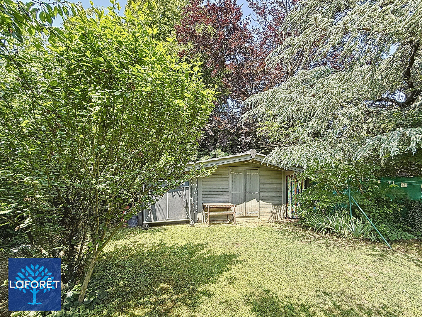 Un grand jardin clos et arboré avec plusieurs espaces et ambiances au calme et à l'abri des regards, avec un joli chalet en bois qui peut être utilisé comme atelier ou pour du rangement.