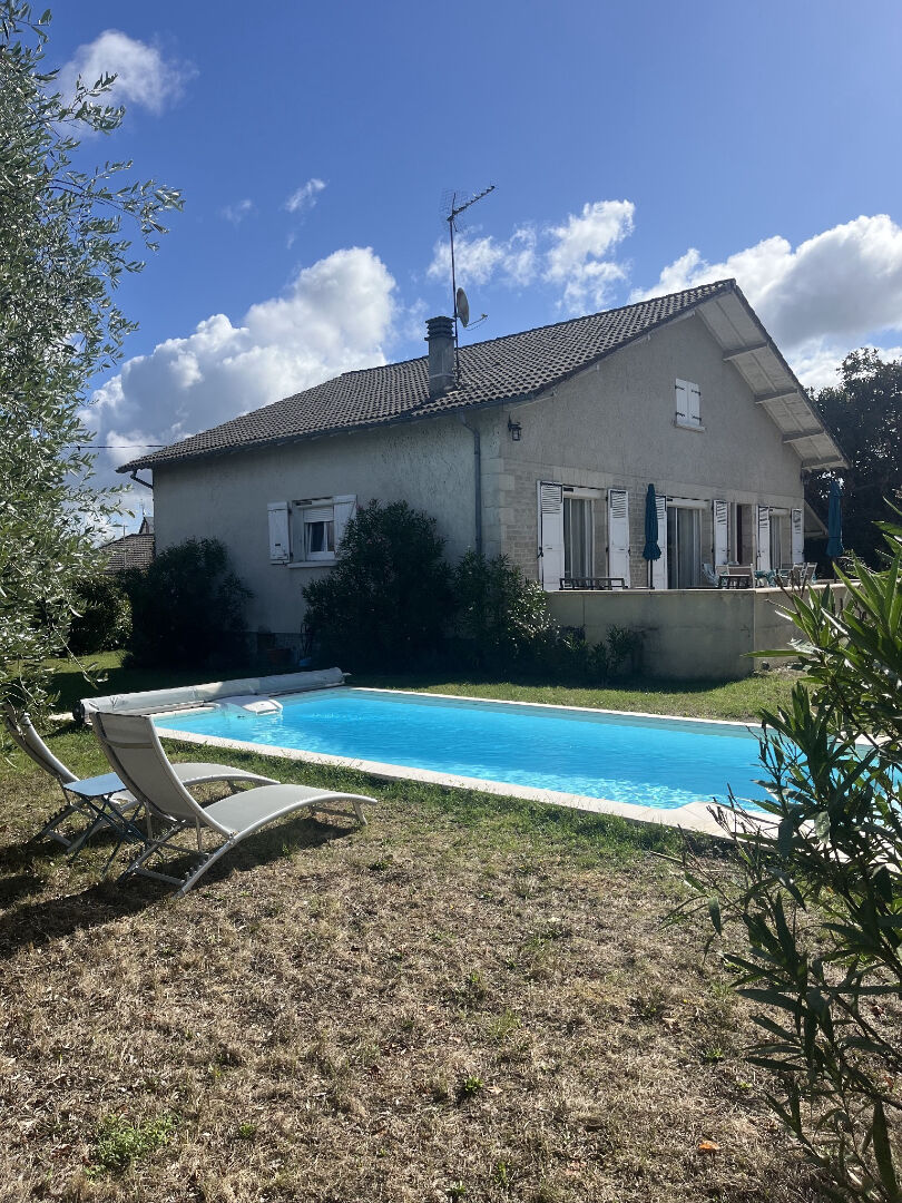 L'intérieur se compose d'un salon-séjour lumineux donnant sur une grande terrasse, d'une cuisine aménagée et équipée avec arrière-cuisine, de 3 chambres, d'une salle d'eau et d'un WC séparé. Un garage complète l'ensemble.