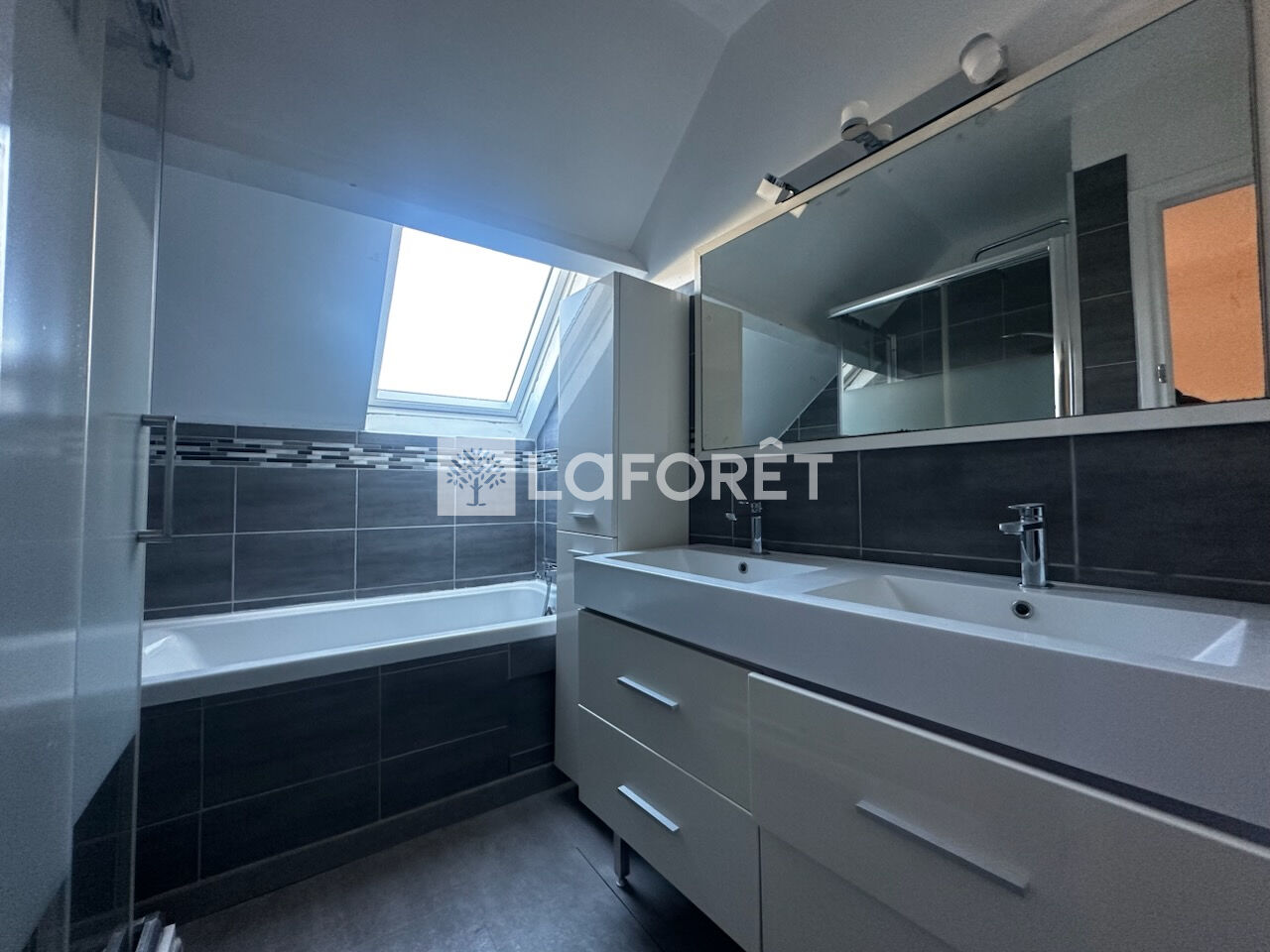 À l'étage, la maison dispose de trois chambres, d'une salle de bains comprenant une douche, une baignoire et une double vasque, ainsi que d'un second WC indépendant.