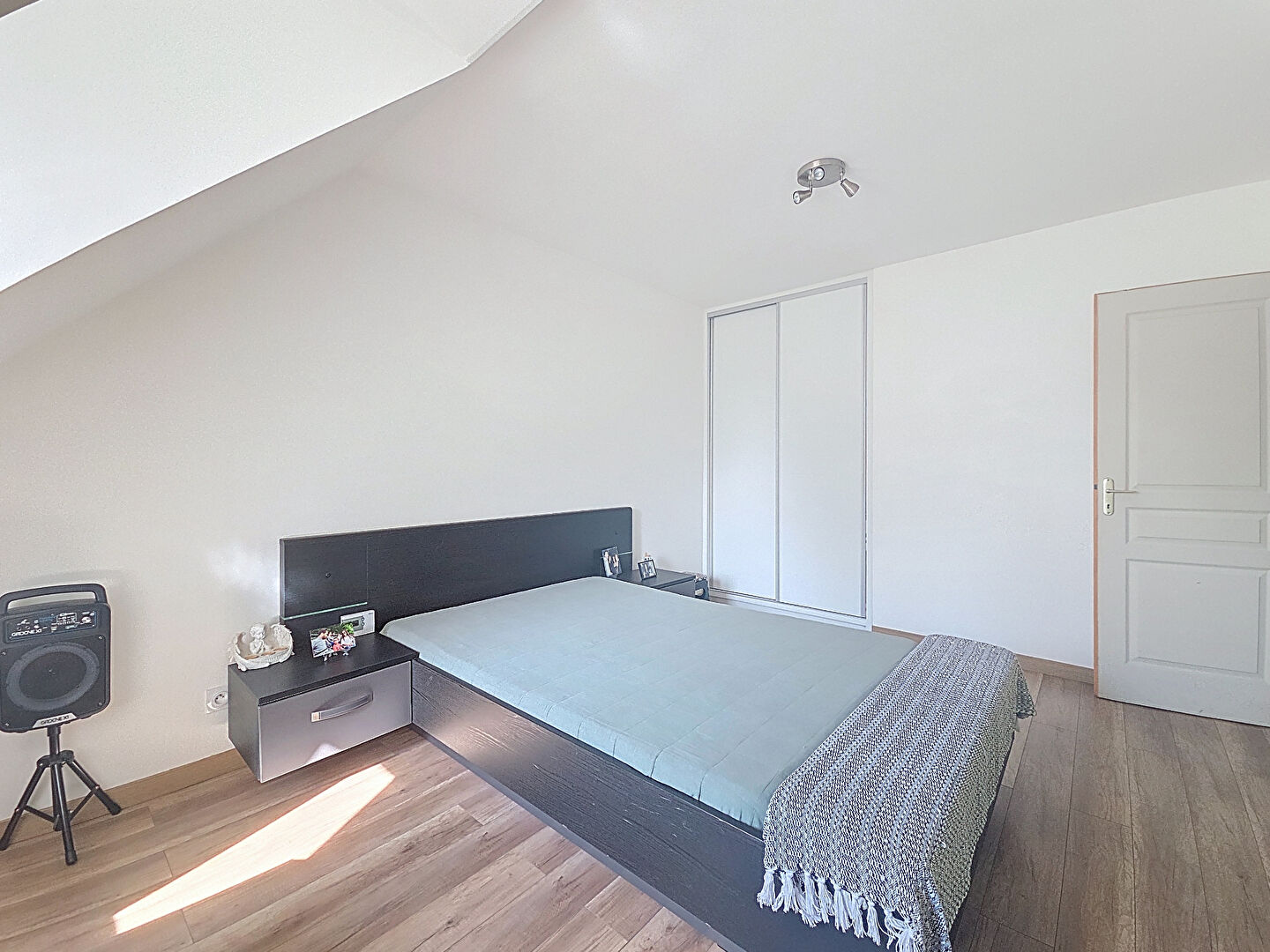 À l'étage, la maison propose trois grandes chambres, toutes équipées de placards intégrés, ainsi qu'une salle d'eau moderne avec WC.